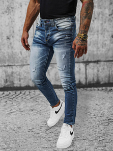 Spodnie jeansowe męskie slim fit niebieskie OZONEE O/EM8886