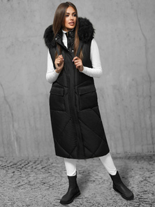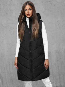 Kamizelka damska długa z kapturem czarna OZONEE O/DK119/1