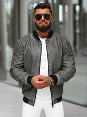 Kurtka skórzana męska bomberka grafitowa OZONEE JS/11Z8107
