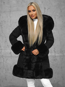 Kurtka zimowa damska długa z futerkiem czarna OZONEE JS/5M3298/392
