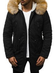 Kurtka zimowa męska parka z futerkiem czarna OZONEE JD/390