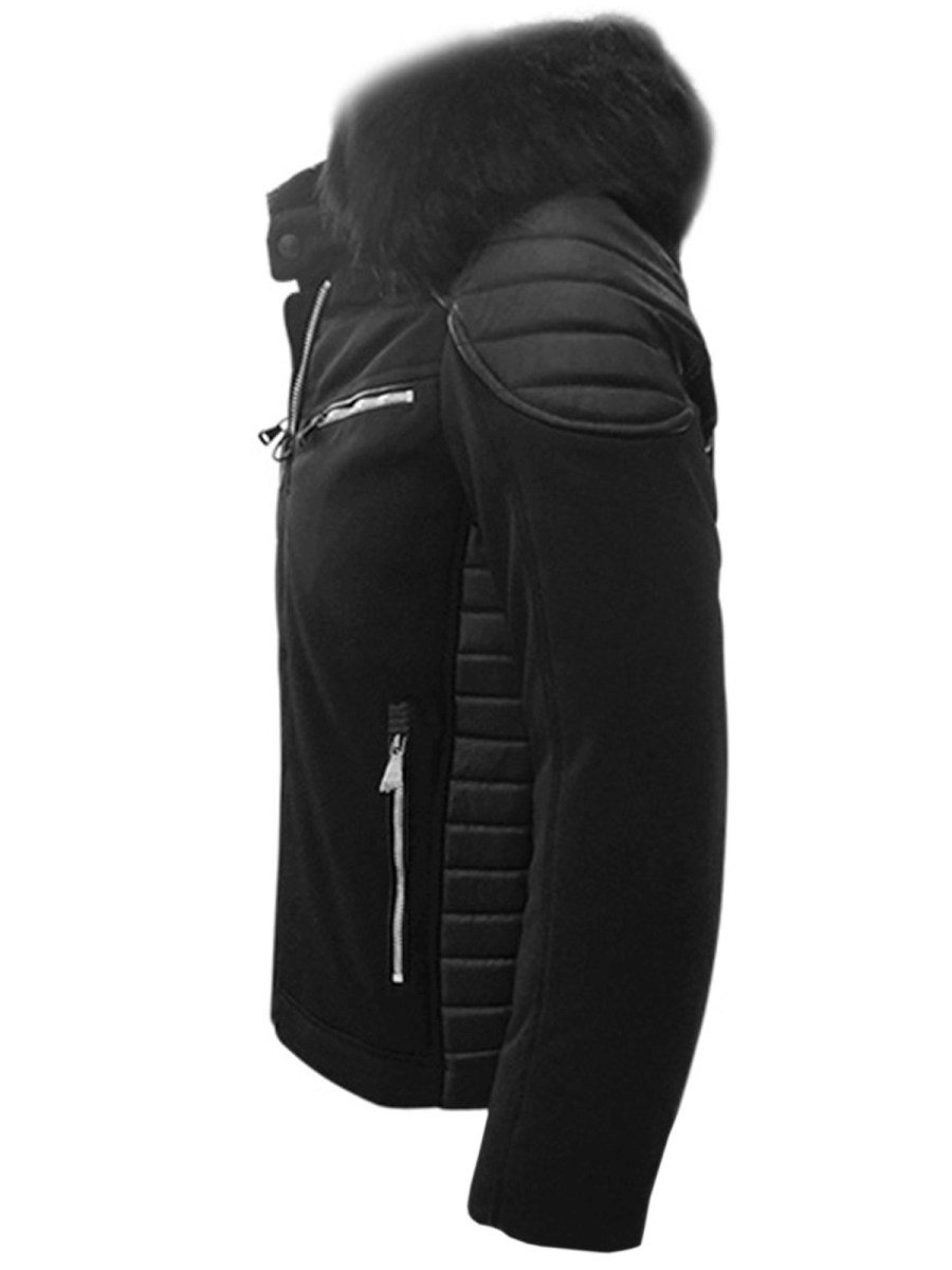 Kurtka ma długość do pasa i prosty krój. Posiada kaptur ze sztucznym futerkiem, dzięki któremu możemy ją nosić podczas wietrznych i śnieżnych dni. Ma ona praktyczne kieszenie po bokach, do których możemy schować telefon, klucze czy portfel. Efektownego wyglądu nadają jej znajdujące się przy ramionach wstawki. Kurtka została wyprodukowana z połączenia poliestru oraz elastanu.