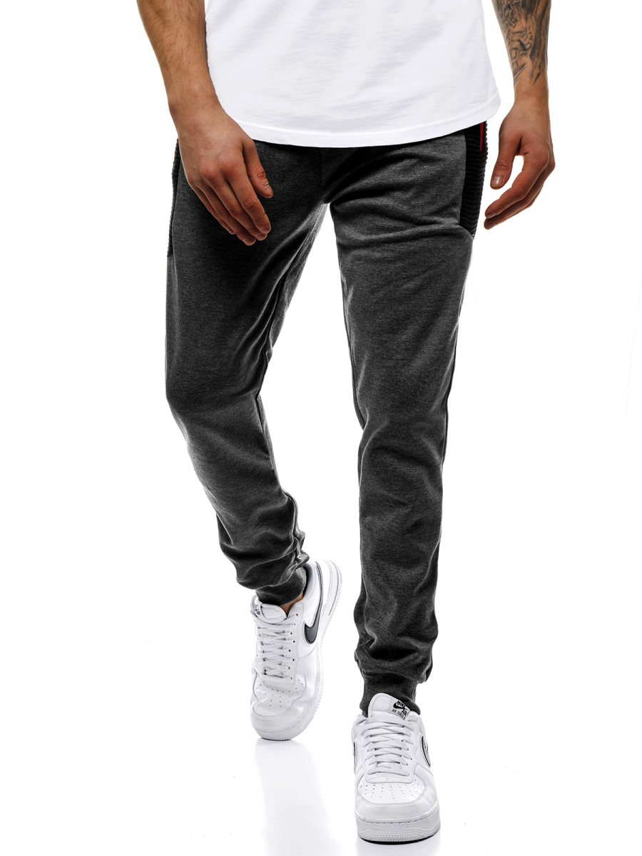 Spodnie mają fason typu joggery. Ich pas oraz nogawki są wykończone ściągaczami, co nadaje im sportowego charakteru. Joggery mają kieszenie po bokach na zamek z kontrastową wstawką, do których schować można telefon, klucze czy portfel. Spodnie zostały wykonane z bawełny oraz poliestru, dzięki czemu są wygodne w noszeniu, przyjemne w dotyku, przewiewne i ładnie układają się na ciele.