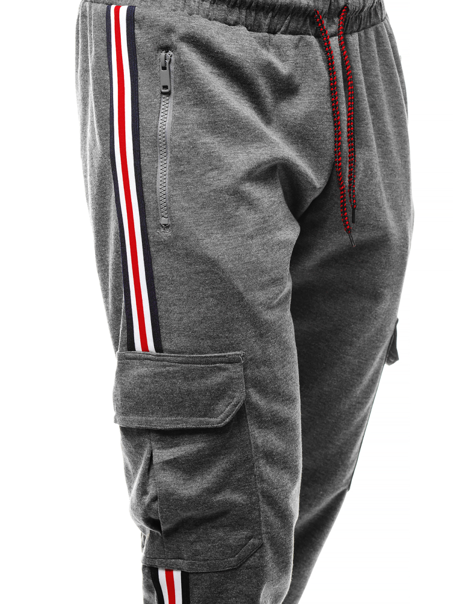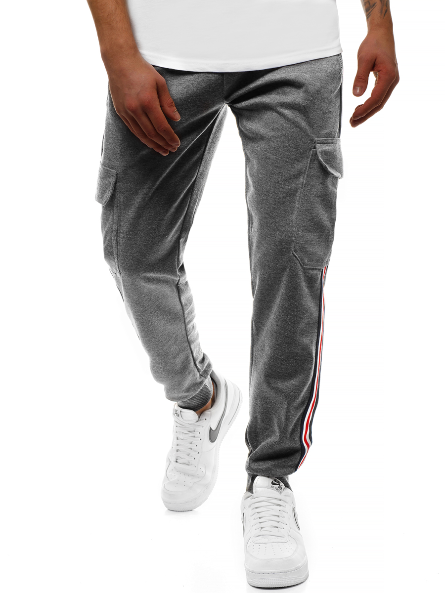 Spodnie mają luźny krój, a ich pas i nogawki są wykończone ściągaczami, co nadaje im sportowego charakteru. Joggery posiadają kieszenie po bokach i na przodzie na zamek, do których schować można klucze czy telefon. Dzięki obecności biegnących wzdłuż nogawek lampasów, prezentują się one bardzo efektownie. Spodnie zostały wykonane z połączenia bawełny oraz poliestru, dzięki czemu są wygodne w noszeniu, miłe w dotyku, przewiewne i ładnie układają się na ciele.