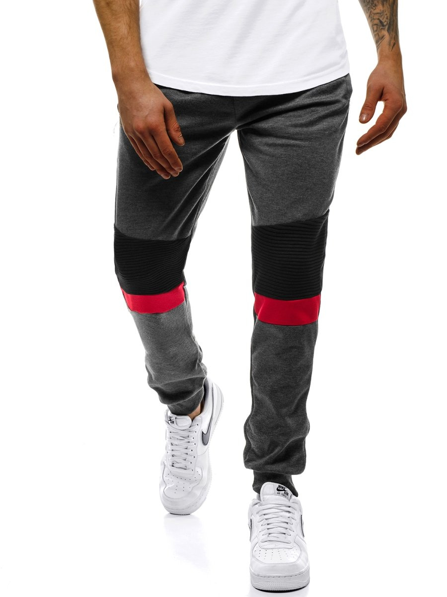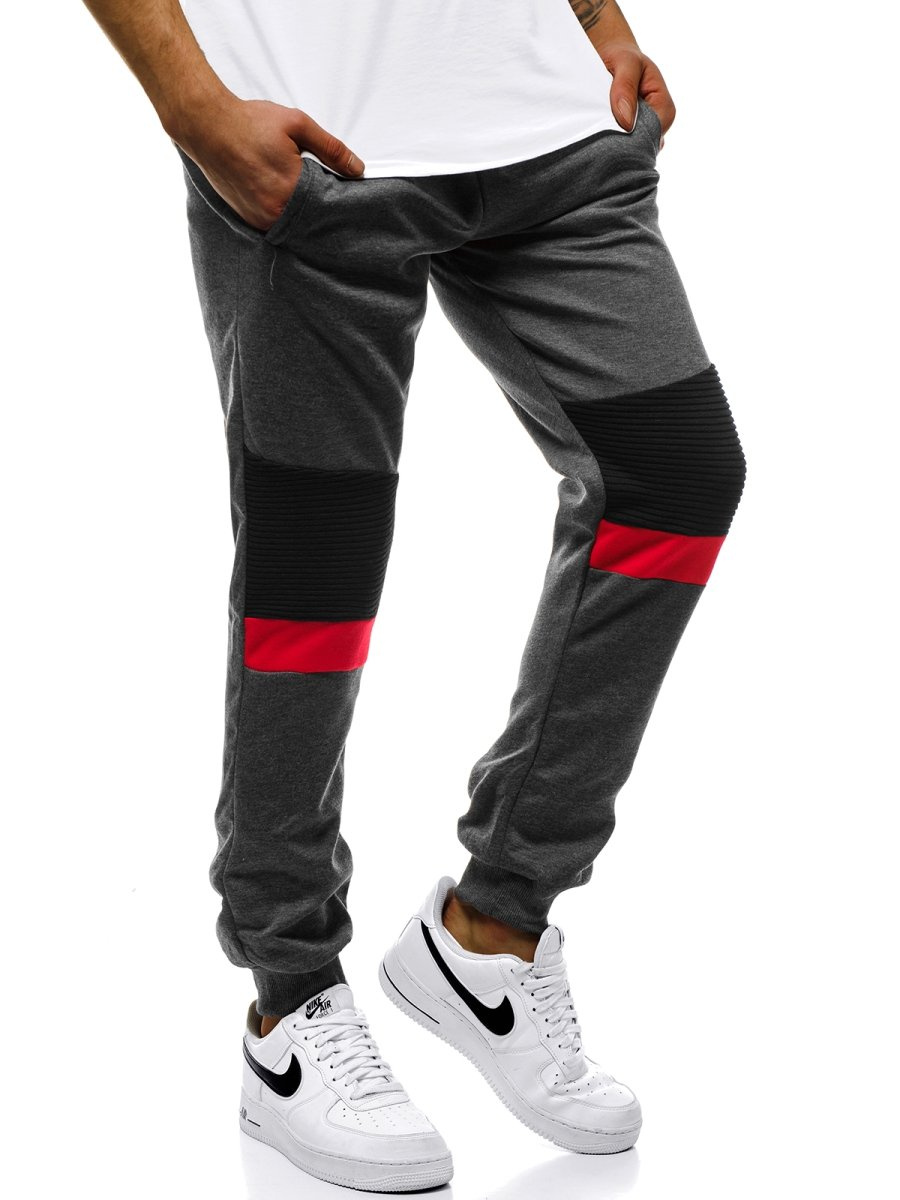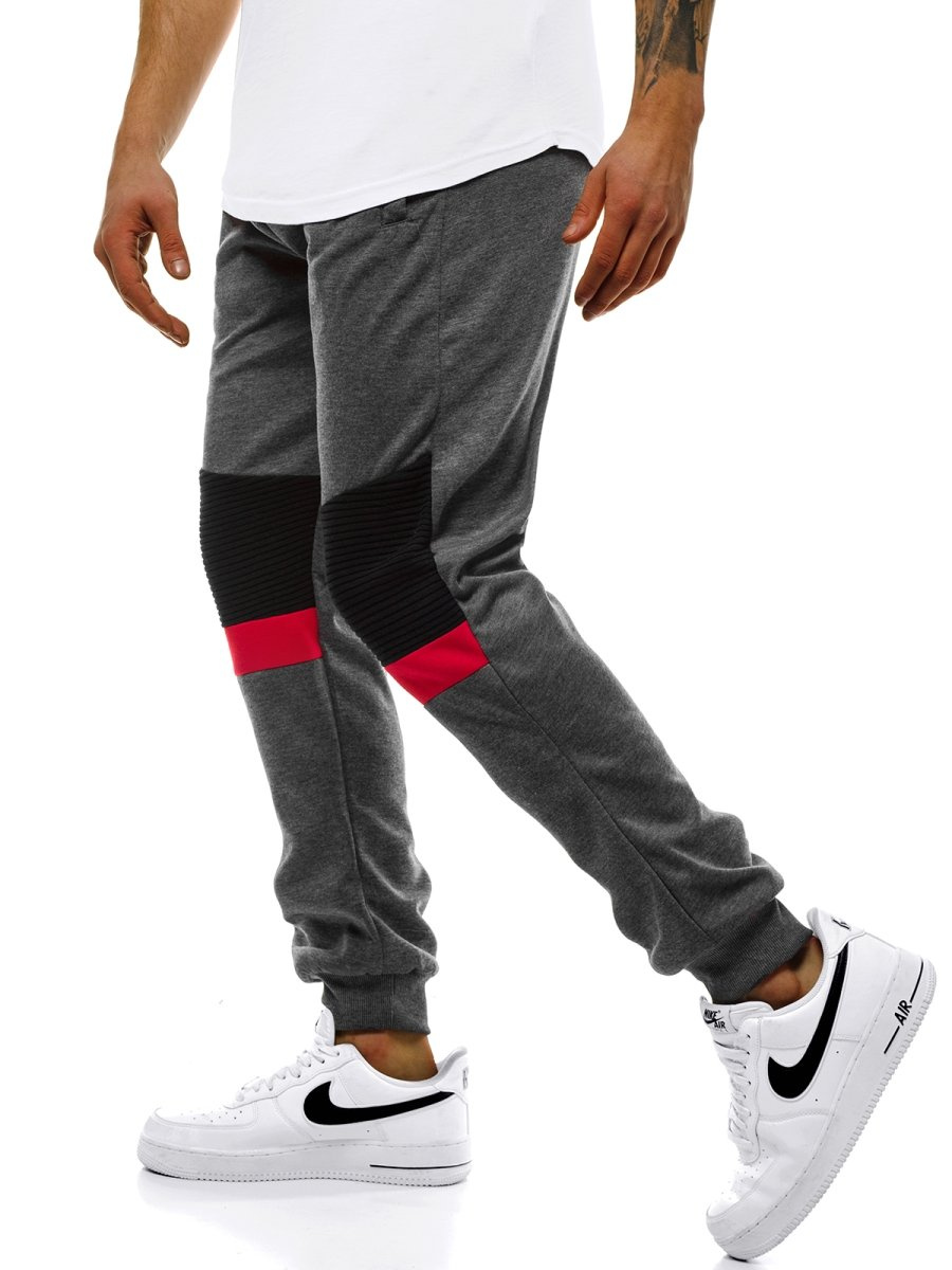 Spodnie mają fason typu joggery. Ich pas oraz nogawki są wykończone ściągaczami, co nadaje im sportowego charakteru. Spodnie mają praktyczne kieszenie po bokach na zamek, do których schować można telefon czy portfel. Dzięki obecności kontrastowych lampasów wzdłuż nogawek, prezentują się one bardzo efektownie. Spodnie zostały wykonane z połączenia bawełny oraz poliestru. Sprawia to, że są wygodne w noszeniu, miłe w dotyku, przewiewne i ładnie układają się na ciele.