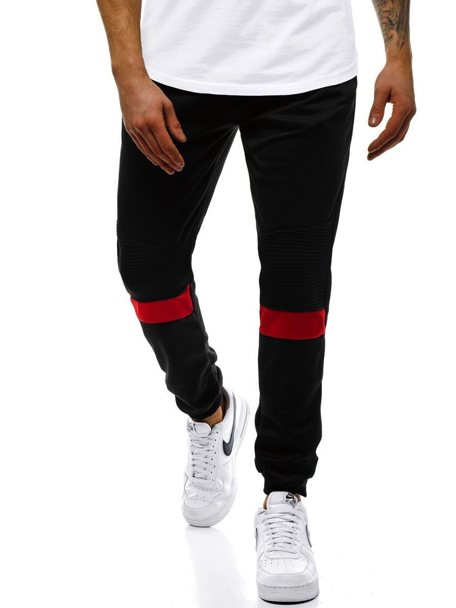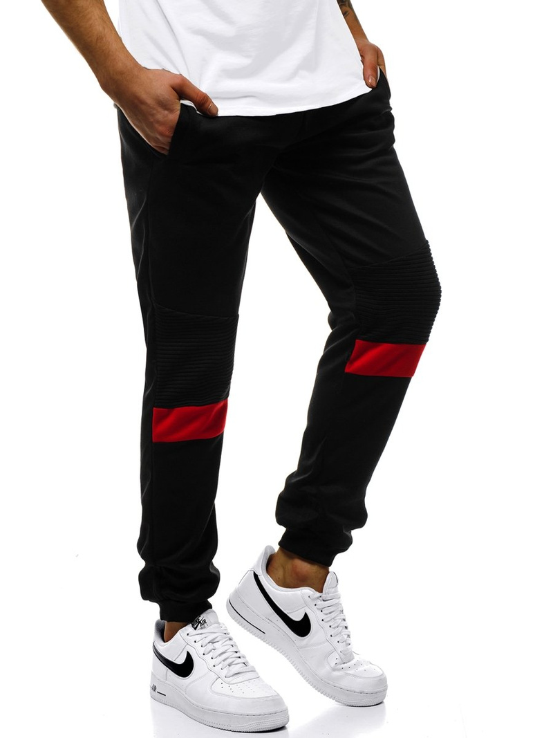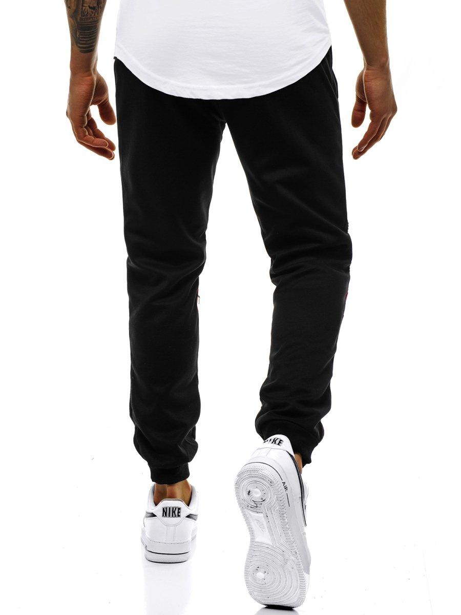 Spodnie mają fason typu joggery. Ich pas oraz nogawki są wykończone ściągaczami, co nadaje im sportowego charakteru. Spodnie mają praktyczne kieszenie po bokach na zamek, do których schować można telefon czy portfel. Dzięki obecności kontrastowych lampasów wzdłuż nogawek, prezentują się one bardzo efektownie. Spodnie zostały wykonane z połączenia bawełny oraz poliestru. Sprawia to, że są wygodne w noszeniu, miłe w dotyku, przewiewne i ładnie układają się na ciele.