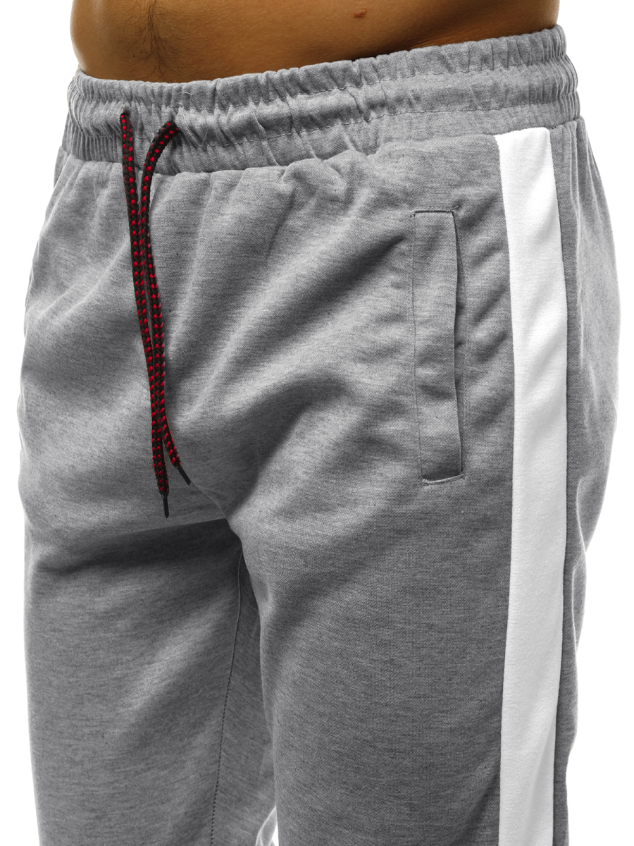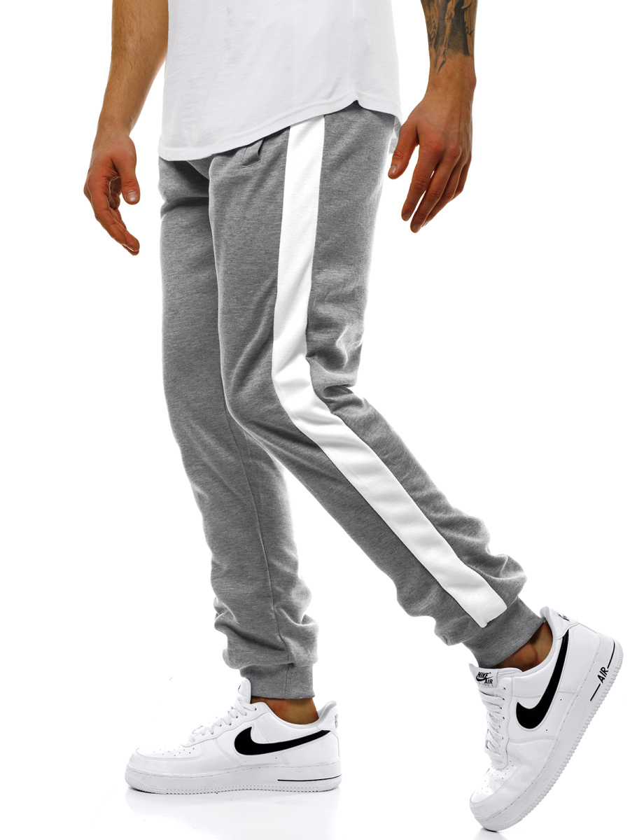 Spodnie mają fason typu joggery. Posiadają one luźny krój, a ich pas i nogawki zostały wykończone ściągaczami nadającymi całości sportowego charakteru. Spodnie mają praktyczne kieszenie po bokach, do których schować można telefon czy klucze. Dzięki obecności kontrastowych lampasów wzdłuż nogawek, lampasy prezentują się bardzo efektownie. Wykonane zostały one z bawełny i poliestru, co sprawia, że są wygodne w noszeniu, miłe w dotyku oraz ładnie układają się na ciele.