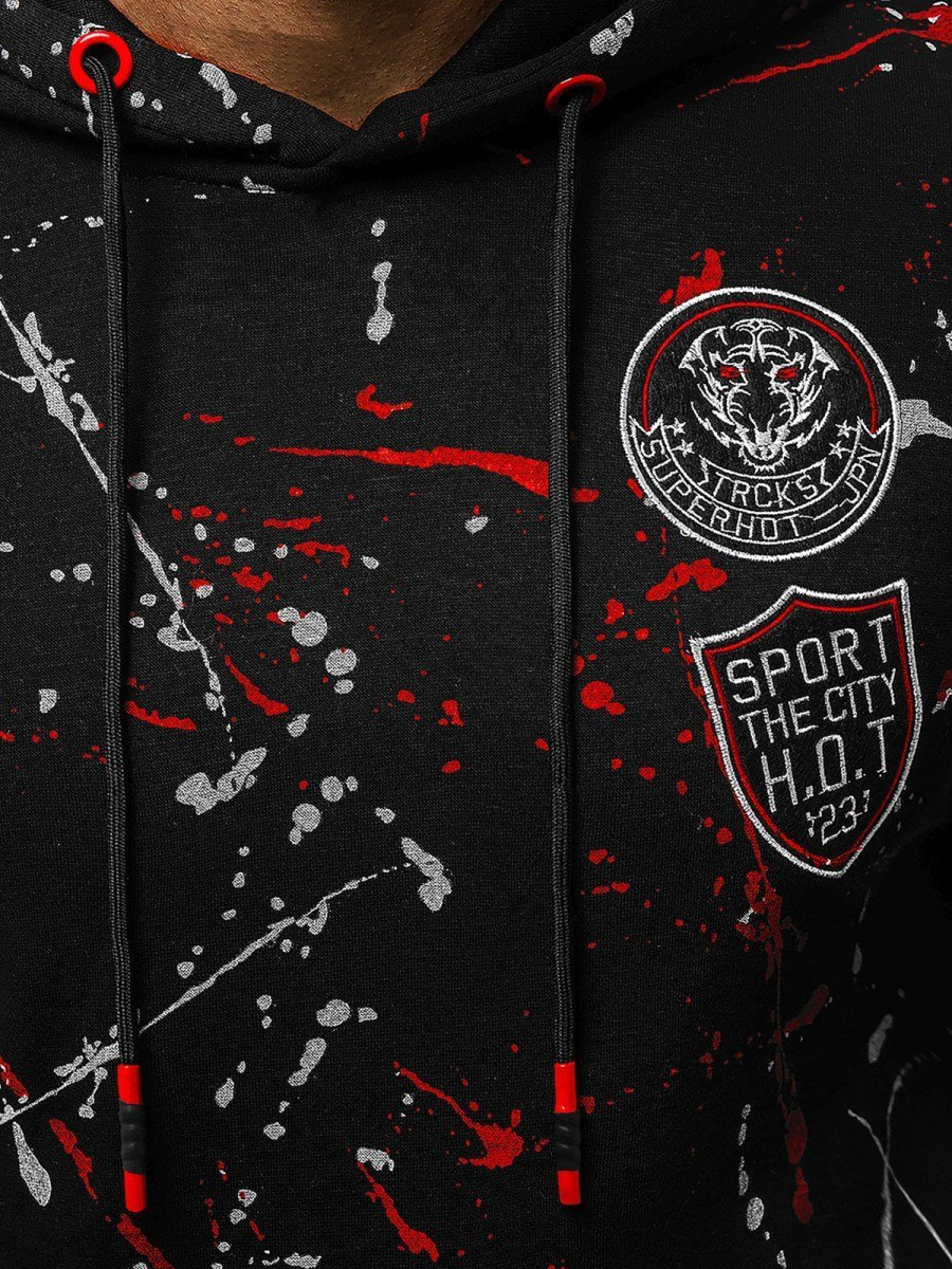 Bluza ma wkładany przez głowę fason. Wyposażona jest ona w praktyczny kaptur, który doskonale sprawdzać będzie się w chłodne, wietrzne dni. Dół oraz rękawy bluzy wykończone są ściągaczami nadającymi jej sportowego charakteru. Bluza wyposażona jest w kieszeń typu kangurka. Dzięki obecności nadruku oraz naszywek na przodzie i rękawach, prezentuje się ona bardzo efektownie. Bluza wykonana została z połączenia bawełny oraz poliestru. Sprawia to, że ładnie układa się na ciele, jest wygodna w noszeniu, miła w dotyku oraz przewiewna.