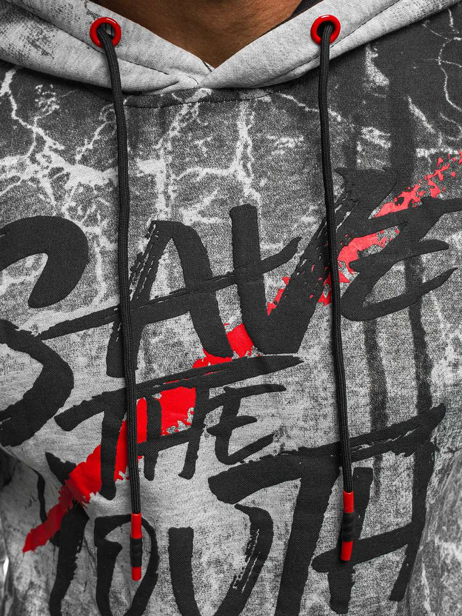Opisywany model to wkładana przez głowę bluza z kapturem, dzięki któremu nosić możemy ją również w deszczowe lub wietrzne dni. Pokrywa ją oryginalny, rzucający się w oczy wzór. Na jej środku znalazł się duży, wyrazisty nadruk. Bluzę wyposażono także w praktyczną kieszeń typu kangurka. Do jej produkcji posłużono się bawełną oraz poliestrem, dzięki czemu jest ona wygodna w noszeniu, przewiewna oraz ładnie dopasowuje się do ciała.