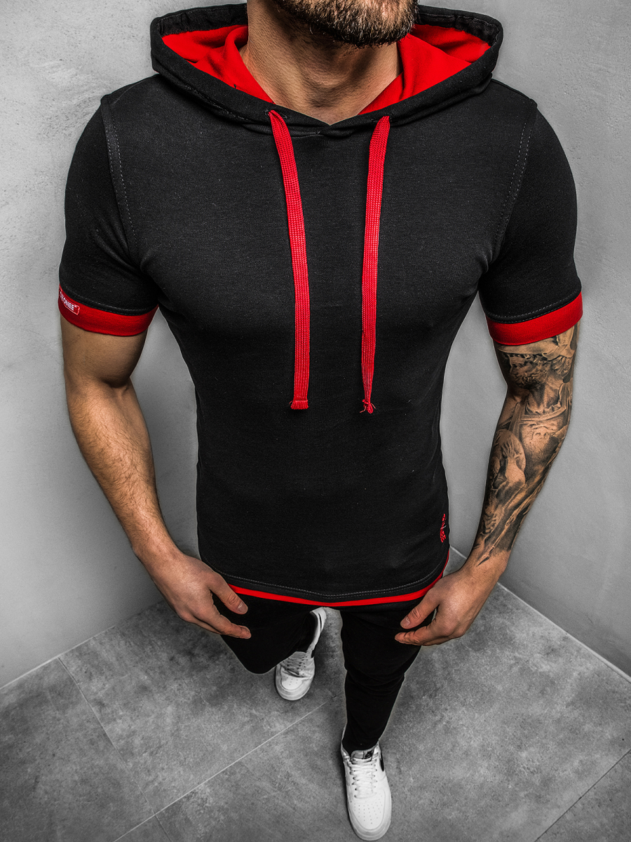 T-Shirt z kapturem męski czarno-czerwony OZONEE O/1273Z