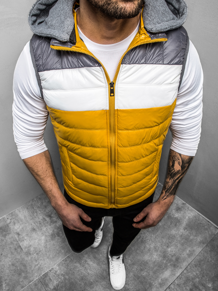Kamizelka posiada efektowne pikowania. Ma ona kontrastową kolorystykę. Kamizelka jest wyposażona w kaptur, dzięki czemu świetnie sprawdzać będzie się w chłodne, wietrzne dni .Ma 2 kieszenie po bokach na zamek i 1 w środku, do których schować można telefon, klucze czy portfel. Wykonana została ona w całości z wysokiej jakości nylonu.