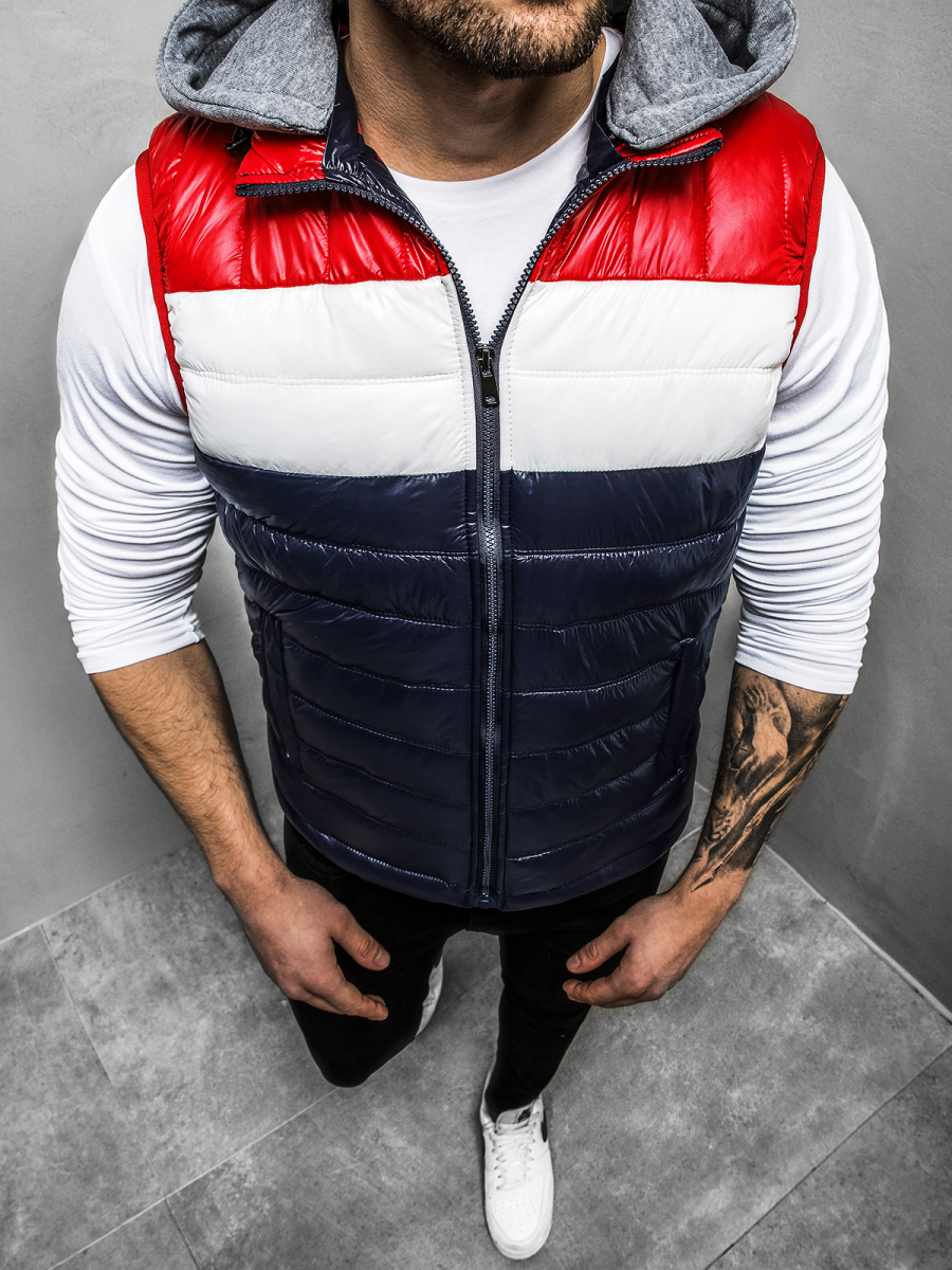 Kamizelka posiada efektowne pikowania. Ma ona kontrastową kolorystykę. Kamizelka jest wyposażona w kaptur, dzięki czemu świetnie sprawdzać będzie się w chłodne, wietrzne dni .Ma 2 kieszenie po bokach na zamek i 1 w środku, do których schować można telefon, klucze czy portfel. Wykonana została ona w całości z wysokiej jakości nylonu.