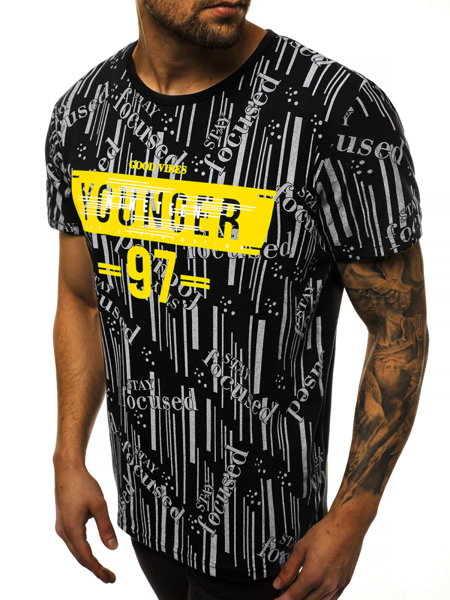 Taki wzorzysty t-shirt to znakomita propozycja dla wszystkich miłośników niebanalnych stylizacji. Nadaje się on na wiele różnych okazji. Koszulkę założyć można na wyjście do klubu, koncert czy spotkanie ze znajomymi. Koszulka bardzo dobrze pasować będzie do ubrań z naszego sklepu internetowego. Połączyć można ją na przykład z jeansową kataną, przecieranymi jeansami z dziurami oraz wysokimi trampkami.