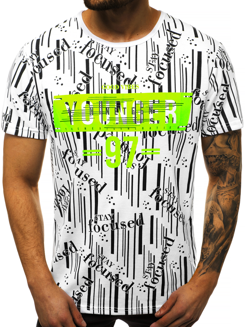 Koszulka ma klasyczny, okrągły dekolt typu U-neck, który prezentuje się korzystnie na każdej sylwetce. Oryginalnego charakteru nadaje jej znajdujący się na przodzie i rękawach nadruk. T-shirt został wykonany z bawełny oraz poliestru. Sprawia to, że jest wygodny w noszeniu, przyjemny w dotyku, przewiewny, odporny na uszkodzenia i zagniecenia oraz ładnie układa się na sylwetce.