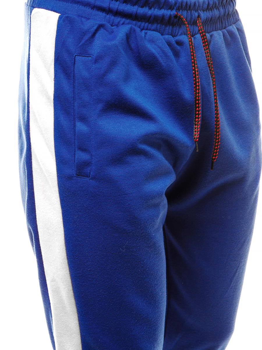 Spodnie mają fason typu joggery. Ich krój jest luźny, a pas i nogawki — wykończone ściągaczami. Joggery mają praktyczne kieszenie po bokach, do których schować można klucze, telefon czy portfel. Oryginalnego charakteru nadają im kontrastowe lampasy biegnące wzdłuż nogawek. Spodnie zostały wykonane z połączenia bawełny oraz poliestru. Sprawia to, że są wygodne w noszeniu, miłe w dotyku, przewiewne i ładnie układają się na sylwetce.