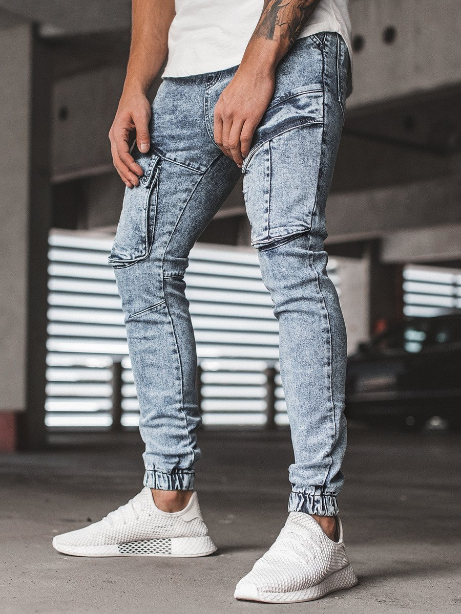 Spodnie mają fason typu joggery - posiadają luźny krój, a przy nogawkach oraz w pasie mają ściągacze. Wyposażono je w kieszenie z przodu, z tyłu i przy kolanach, do których schować można klucze czy telefon. Spodnie zostały wyprodukowane z bawełny z domieszką elastanu, co sprawia, że są wygodne w noszeniu, przewiewne, przyjemne w dotyku, odporne na uszkodzenia oraz zagniecenia i ładnie układają się na sylwetce.