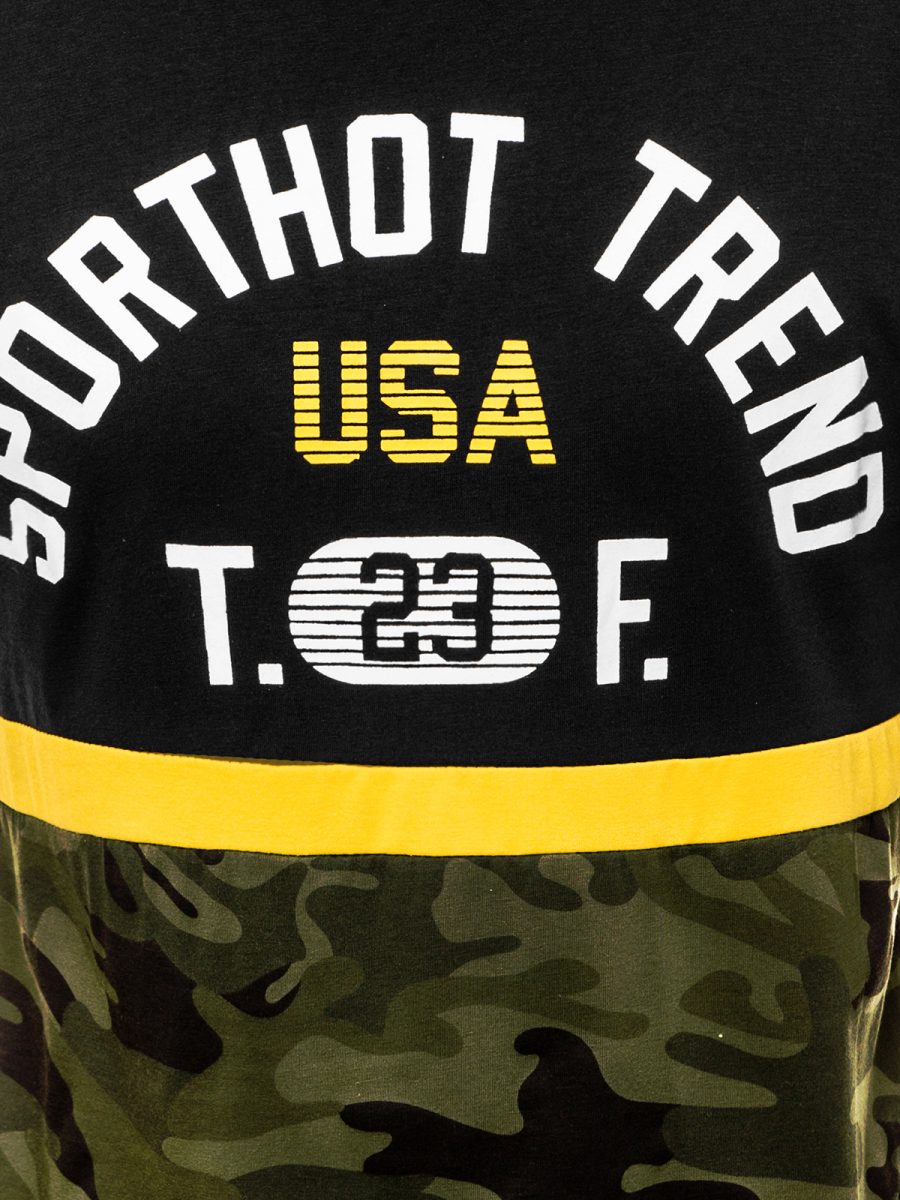 - KOSZULKA POSIADA NADRUK NA PRZODZIE I CAMO WZÓR PRZY RĘKAWACH I NA PRZODZIE