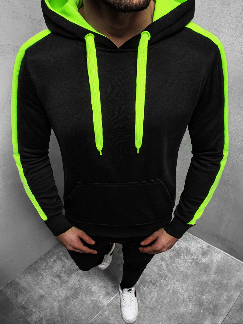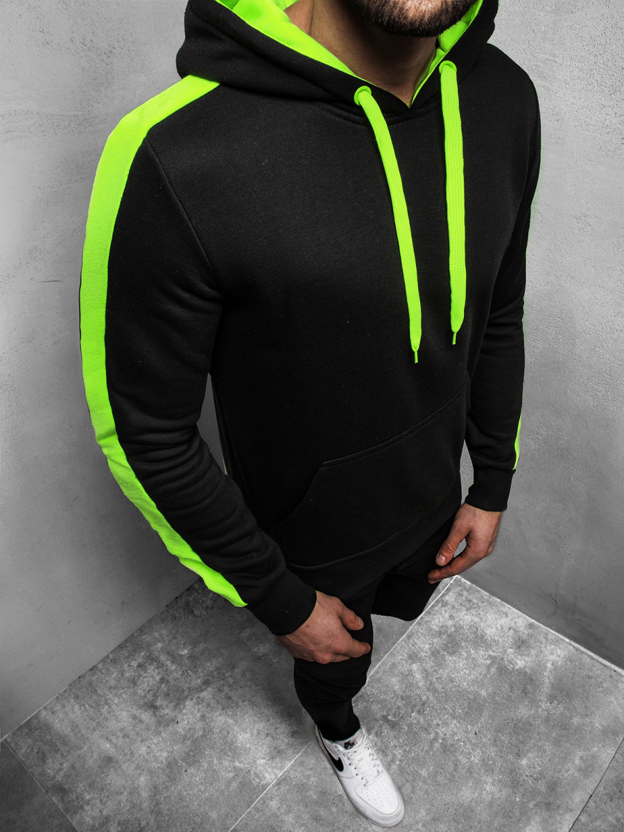 Bluza jest wkładana przez głowę. Posiada praktyczny kaptur, który świetnie sprawdzać będzie się w chłodne, wietrzne dni. Bluza ma kieszeń typu kangurka. Jej dół i rękawy zostały wykończone ściągaczami, które nadają całości sportowego charakteru. Bluza posiada kontrastowe łączenia materiału na rękawach, dzięki czemu prezentuje się bardzo efektownie. Wykonana została ona z połączenia bawełny oraz poliestru. Sprawia to, że ładnie układa się na ciele, jest wygodna w noszeniu, przyjemna w dotyku oraz przewiewna.