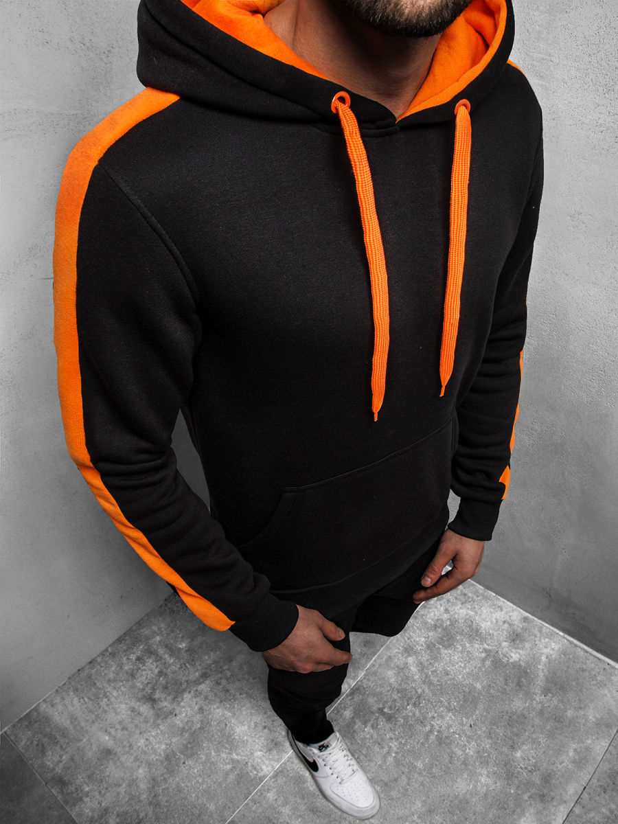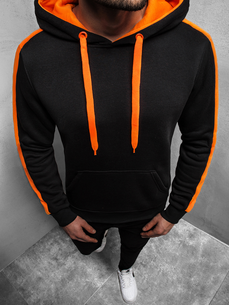 Bluza jest wkładana przez głowę. Posiada praktyczny kaptur, który świetnie sprawdzać będzie się w chłodne, wietrzne dni. Bluza ma kieszeń typu kangurka. Jej dół i rękawy zostały wykończone ściągaczami, które nadają całości sportowego charakteru. Bluza posiada kontrastowe łączenia materiału na rękawach, dzięki czemu prezentuje się bardzo efektownie. Wykonana została ona z połączenia bawełny oraz poliestru. Sprawia to, że ładnie układa się na ciele, jest wygodna w noszeniu, przyjemna w dotyku oraz przewiewna.