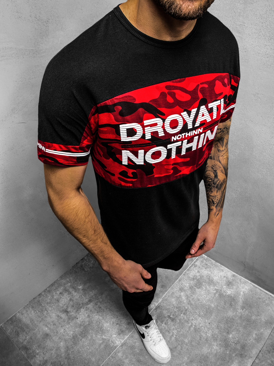 Koszulka ma klasyczny, okrągły dekolt typu U-neck, który prezentuje się korzystnie na każdej sylwetce. Na przodzie znajduje się efektowny nadruk, a z przodu oraz na rękawach — wzór camo. T-shirt wykonany został z połączenia bawełny oraz poliestru, dzięki czemu jest wygodny w noszeniu, przyjemny w dotyku, odporny na uszkodzenia i zagniecenia oraz ładnie układa się na sylwetce.