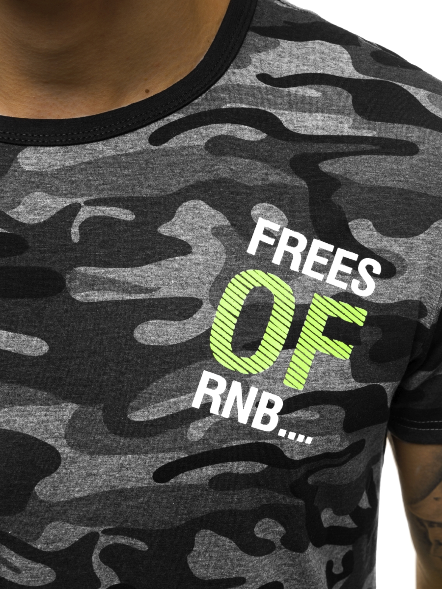 Koszulka posiada naddruk na przodzie oraz wzór camo. Oryginalnego charakteru nadaje jej kontrastowe łączenie tkaniny na dole. T-shirt ma dłuższy fason, dzięki czemu dobrze sprawdzać będzie się u wysokich mężczyzn. Posiada ona klasyczny, okrągły dekolt typu U-neck. Koszulka została wykonana z połączenia bawełny oraz poliestru, dzięki czemu ładnie układa się na sylwetce, jest wygodna w noszeniu, przyjemna w dotyku, przewiewna i odporna na uszkodzenia oraz zagniecenia.