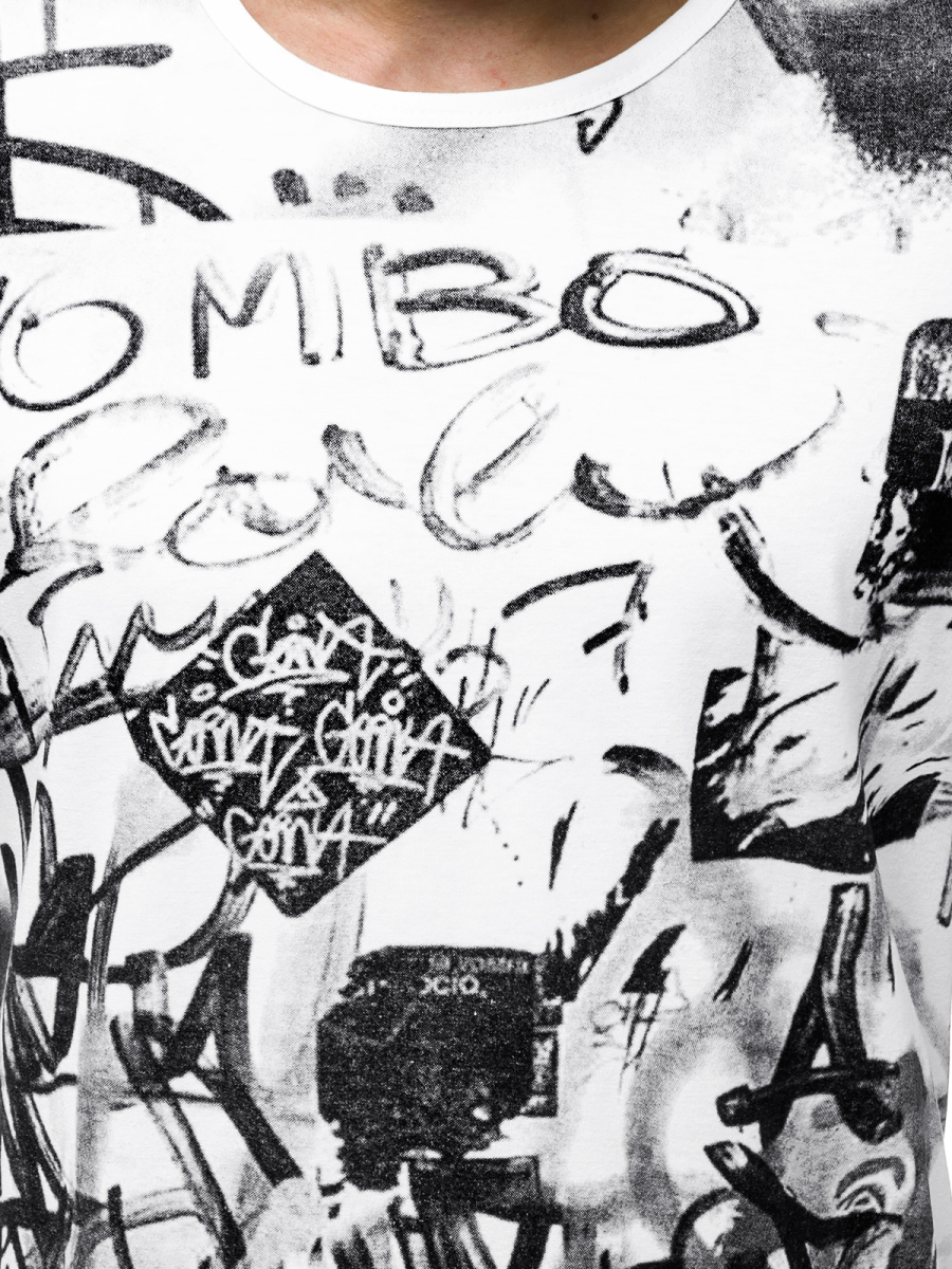 Koszulka ma klasyczny, okrągły dekolt typu U-neck. Na jej przodzie oraz rękawach znajduje się oryginalny nadruk. T-shirt wykonany został z połączenia bawełny oraz poliestru. Sprawia to, że ładnie dopasowuje się do sylwetki, jest wygodny w noszeniu, przyjemny w dotyku, przewiewny i odporny na uszkodzenia i zagniecenia.