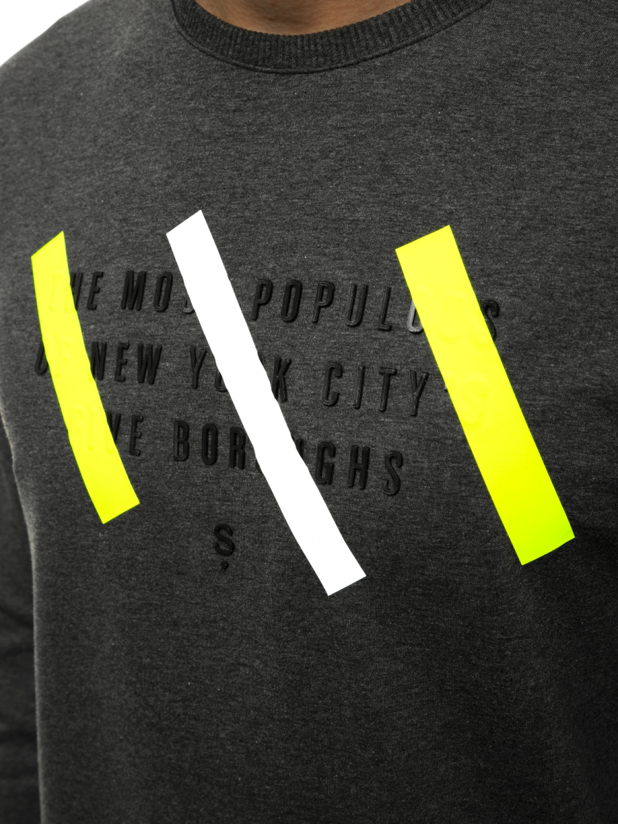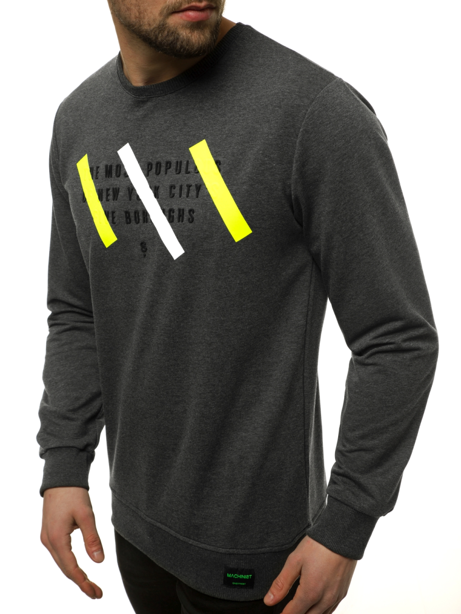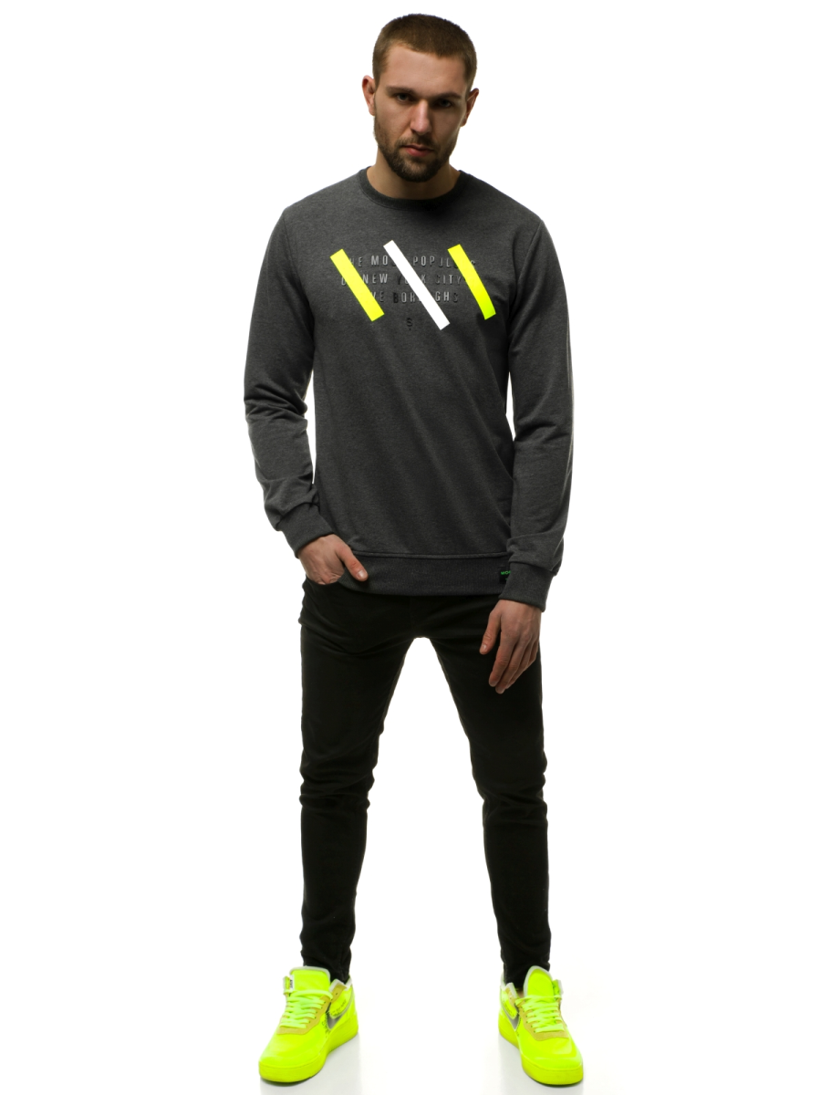 Bluza jest wkładana przez głowę. Ma klasyczny, okrągły dekolt typu U-neck. Jej dół oraz rękawy zostały wykończone ściągaczami, co nadaje jej sportowego charakteru. Na przodzie bluzy znajduje się efektowny nadruk. Wykonana została ona z połączenia bawełny oraz poliestru. Sprawia to, że ładnie układa się na sylwetce, jest wygodna w noszeniu, przyjemna w dotyku oraz przewiewna.