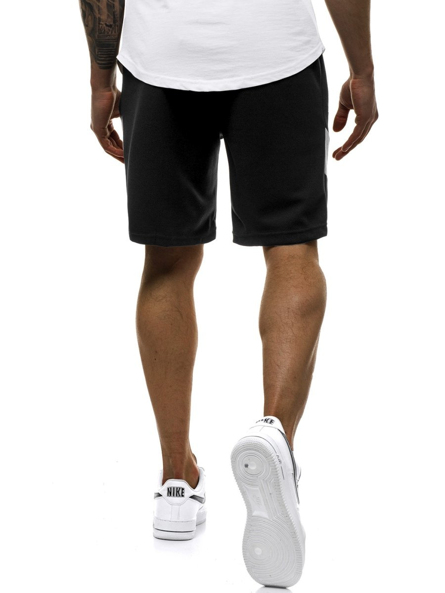 Spodenki posiadają praktyczny pas ze ściągaczem, który ułatwia dopasowanie ich do sylwetki. Mają one kieszenie po bokach na zamek, do których schować można klucze, portfel czy telefon. Oryginalnego charakteru nadają spodenkom kontrastowe wstawki na nogawkach. Model ten wykonany został z połączenia bawełny oraz poliestru. Sprawia to, że spodenki ładnie układają się na ciele, nie rozciągają z czasem, są wygodne w noszeniu, przyjemne w dotyku oraz przewiewne.