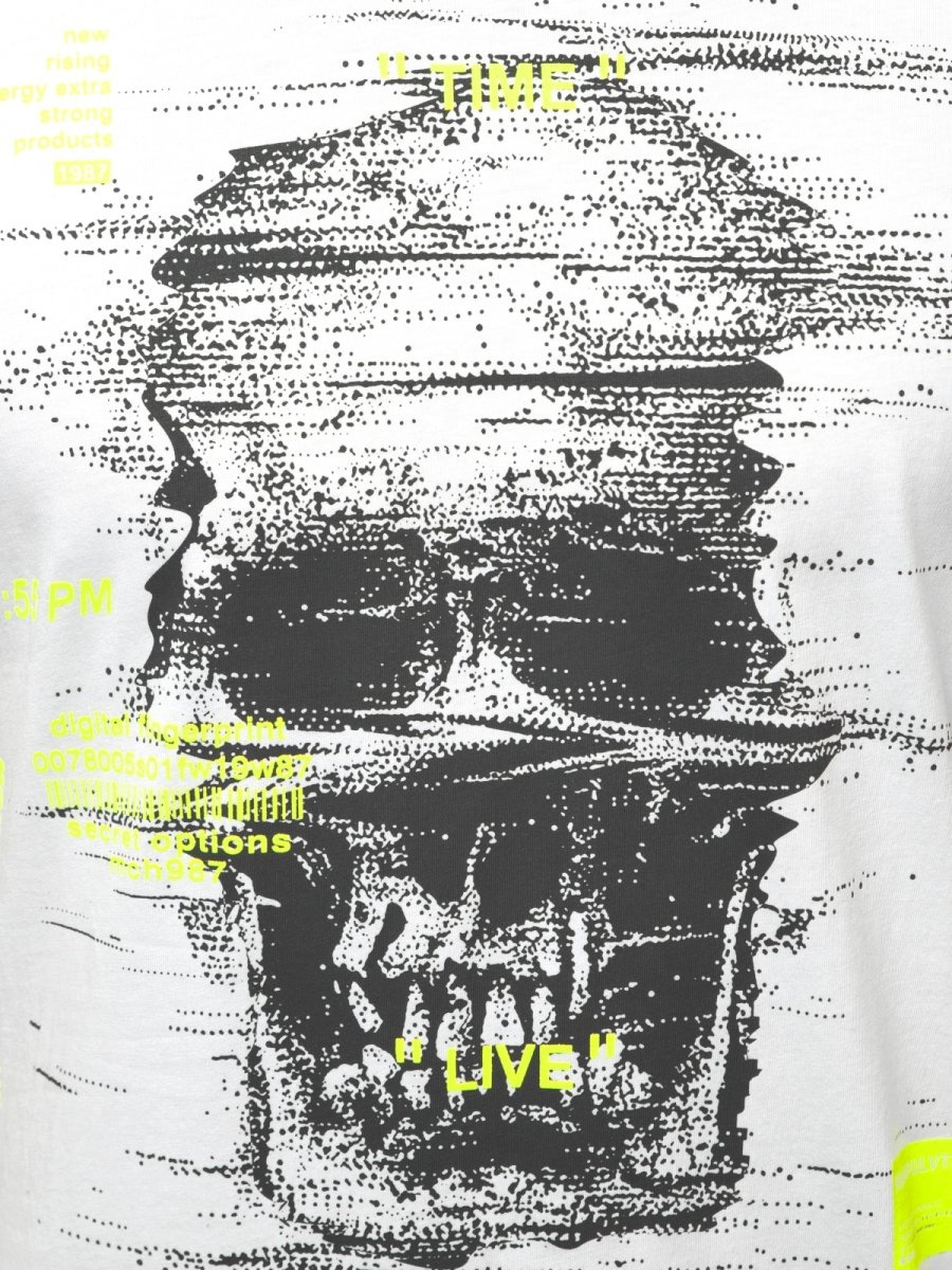 Cechą charakterystyczną takiej koszulki typu tanktop bez brak rękawów. Na jej przodzie znajduje się efektowny, przyciągający wzrok nadruk z motywem czaszki. Tanktop został wykonany w całości z bawełny. Sprawia to, że jest on wygodny w noszeniu, przyjemny w dotyku, miękki, przewiewny oraz odporny na uszkodzenia i zagniecenia.