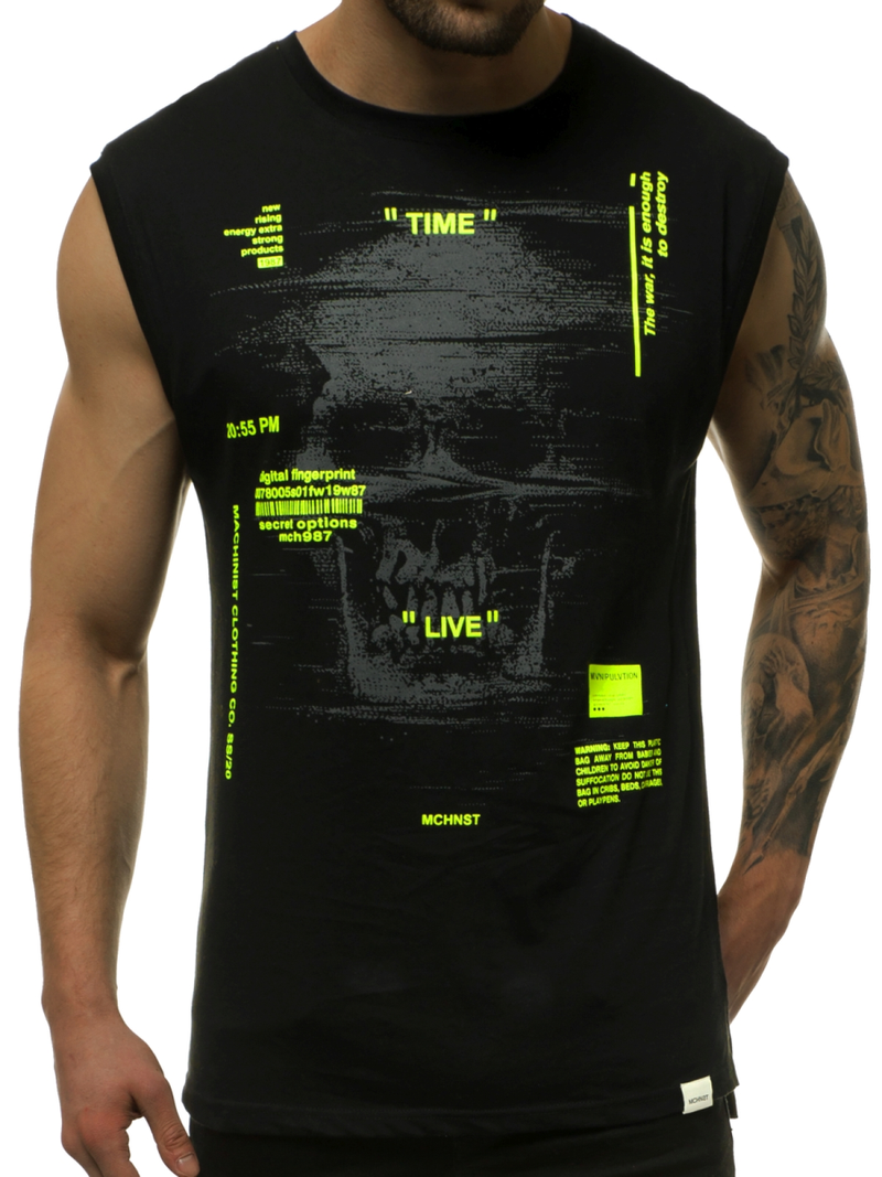 Cechą charakterystyczną takiej koszulki typu tanktop bez brak rękawów. Na jej przodzie znajduje się efektowny, przyciągający wzrok nadruk z motywem czaszki. Tanktop został wykonany w całości z bawełny. Sprawia to, że jest on wygodny w noszeniu, przyjemny w dotyku, miękki, przewiewny oraz odporny na uszkodzenia i zagniecenia.