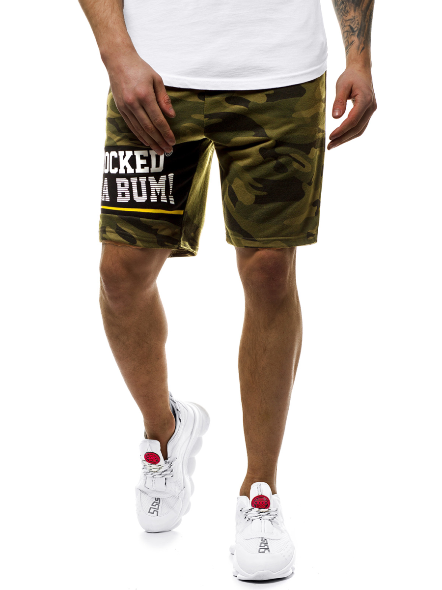 Spodenki mają praktyczny pas ze ściągaczem, dzięki czemu ładnie układają się na sylwetce i nie zsuwają podczas noszenia. Posiadają one 2 kieszenie po bokach i 1 z tyłu, które z łatwością pomieszczą wszystkie niezbędne drobiazgi, takie jak klucze, telefon czy portfel. Oryginalnego charakteru nadaje spodenkom pokrywający je wzór camo oraz znajdujący się na nogawce nadruk. Wykonane zostały one z połączenia bawełny oraz poliestru, co sprawia, że nie rozciągają się z czasem, są wygodne w noszeniu, miłe w dotyku i nie gniotą się.