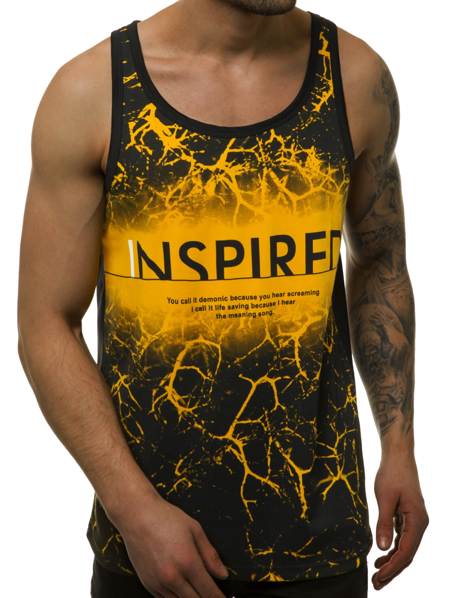 Tego typu koszulka bez rękawów określana jest mianem tanktopu. Oryginalnego charakteru nadaje jej znajdujący się na przodzie designerski wzór oraz nadruk. Tanktop został wyprodukowany z połączenia bawełny oraz poliestru, dzięki czemu ładnie dopasowuje się do sylwetki, nie rozciąga się, jest wygodny w noszeniu oraz przewiewny.
