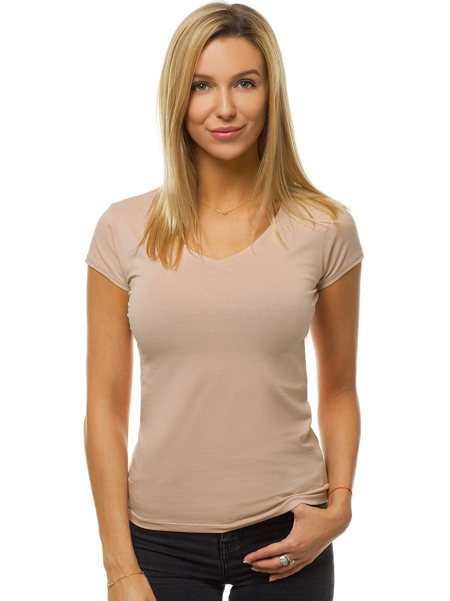 Koszulka jest wkładana przez głowę. Ma ona dekolt w szpic typu V-neck, który doskonale sprawdzać będzie się u kobiet chcących optycznie wysmuklić górną część sylwetki oraz podkreślić biust. T-shirt został wyprodukowany w całości z bawełny. Sprawia to, że jest bardzo wygodny w noszeniu, przyjemny w dotyku, przewiewny i nie gniecie się.