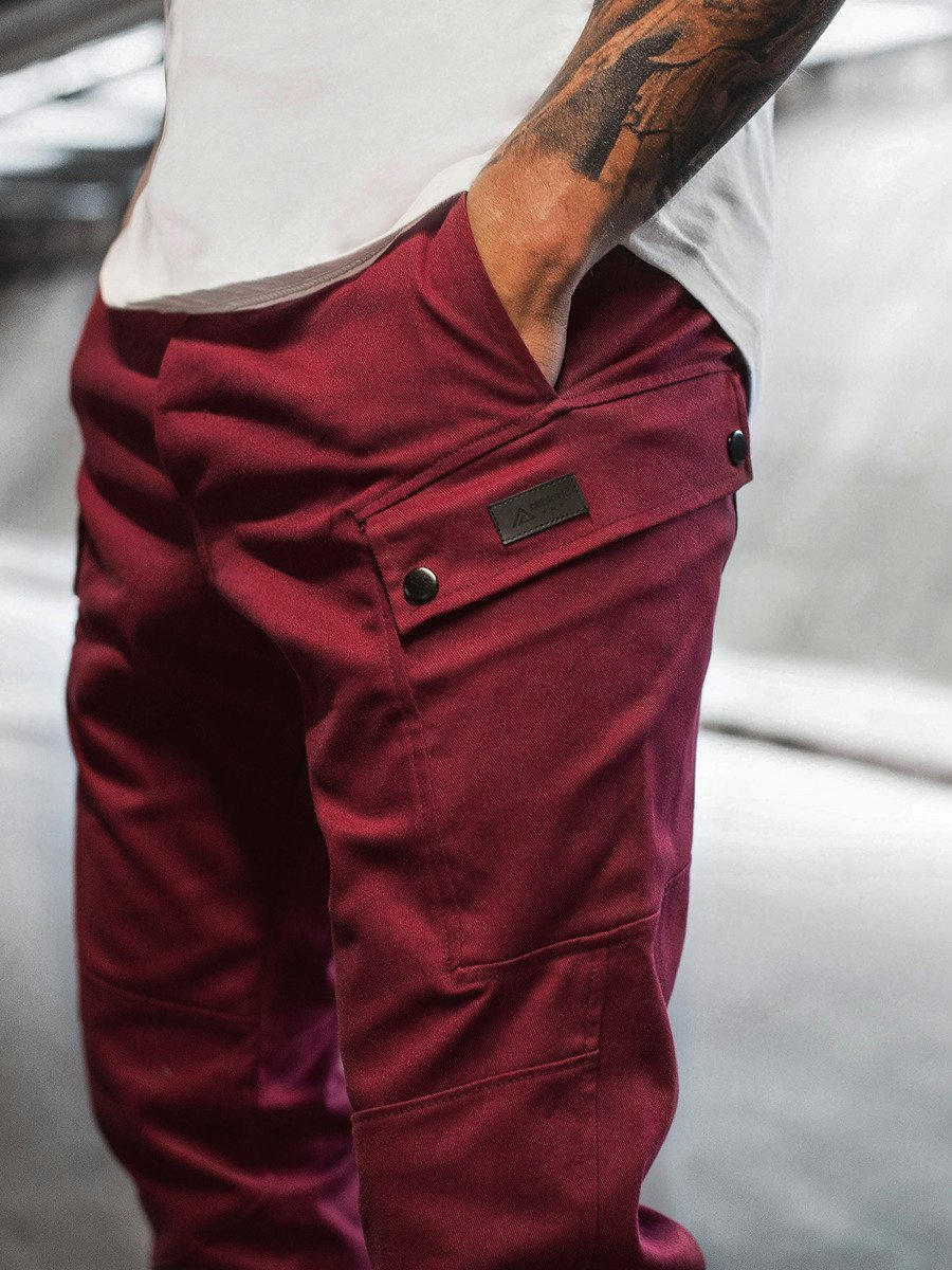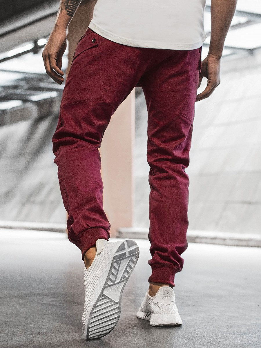 Spodnie mają fason typi chino. Ich pas oraz nogawki zostały wykończone ściągaczami, co nadaje im sportowego charakteru. Spodnie mają wygodne kieszenie po bokach, do których schować można portfel czy telefon. Wyprodukowane zostały one w całości z bawełny. Sprawia to, że są one wygodne w noszeniu, przewiewne, przyjemne w dotyku oraz odporne na uszkodzenia i zagniecenia.