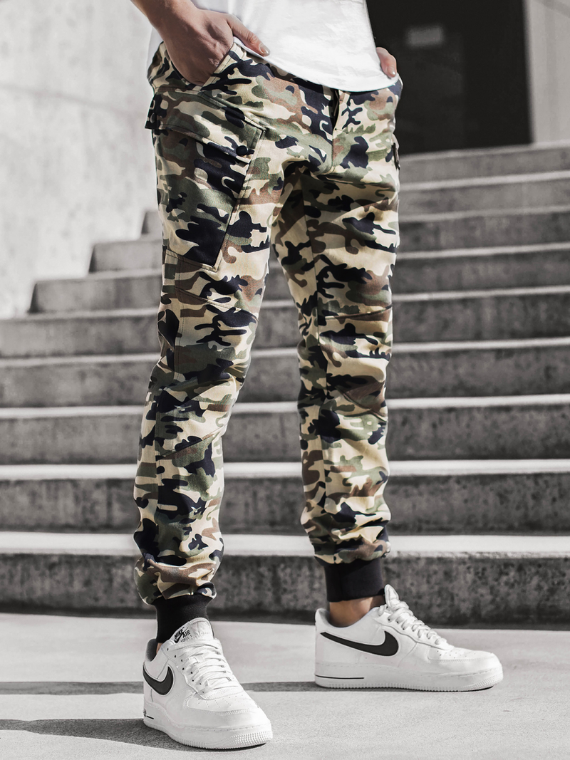 Spodnie mają fason typi chino. Ich pas oraz nogawki zostały wykończone ściągaczami, co nadaje im sportowego charakteru. Spodnie mają wygodne kieszenie po bokach, do których schować można portfel czy telefon. Wyprodukowane zostały one w całości z bawełny. Sprawia to, że są one wygodne w noszeniu, przewiewne, przyjemne w dotyku oraz odporne na uszkodzenia i zagniecenia.