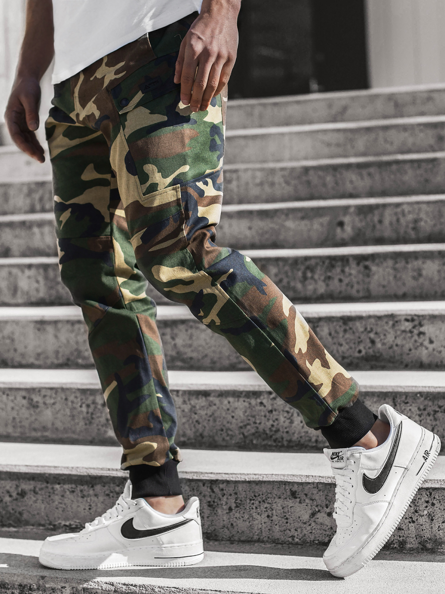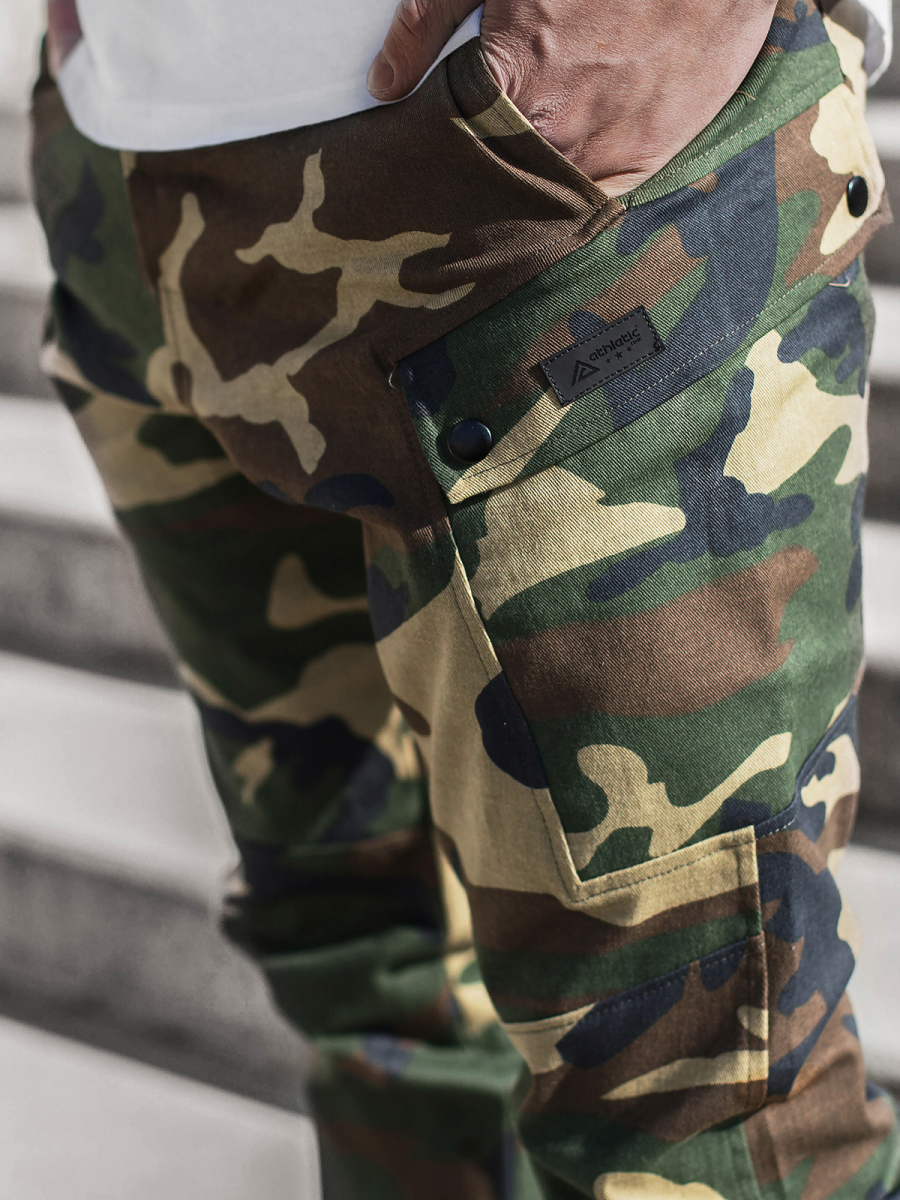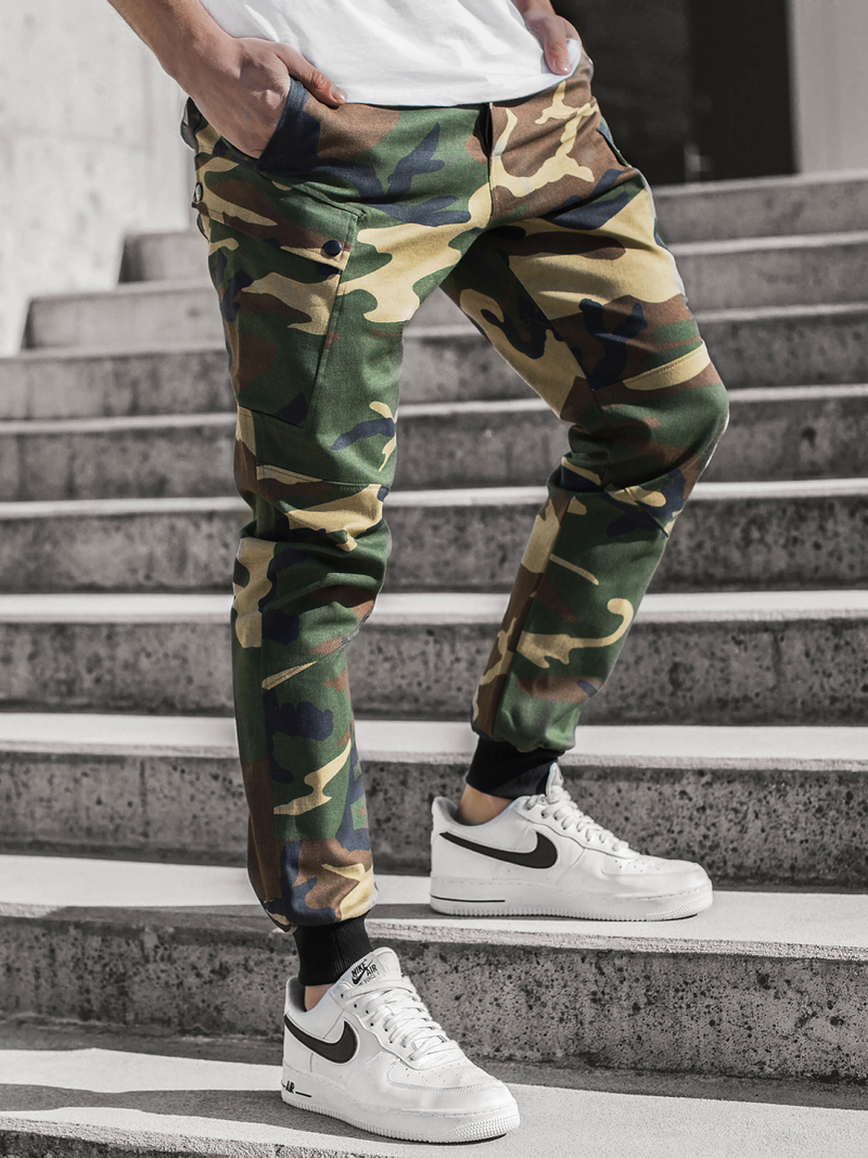 Spodnie mają fason typi chino. Ich pas oraz nogawki zostały wykończone ściągaczami, co nadaje im sportowego charakteru. Spodnie mają wygodne kieszenie po bokach, do których schować można portfel czy telefon. Wyprodukowane zostały one w całości z bawełny. Sprawia to, że są one wygodne w noszeniu, przewiewne, przyjemne w dotyku oraz odporne na uszkodzenia i zagniecenia.