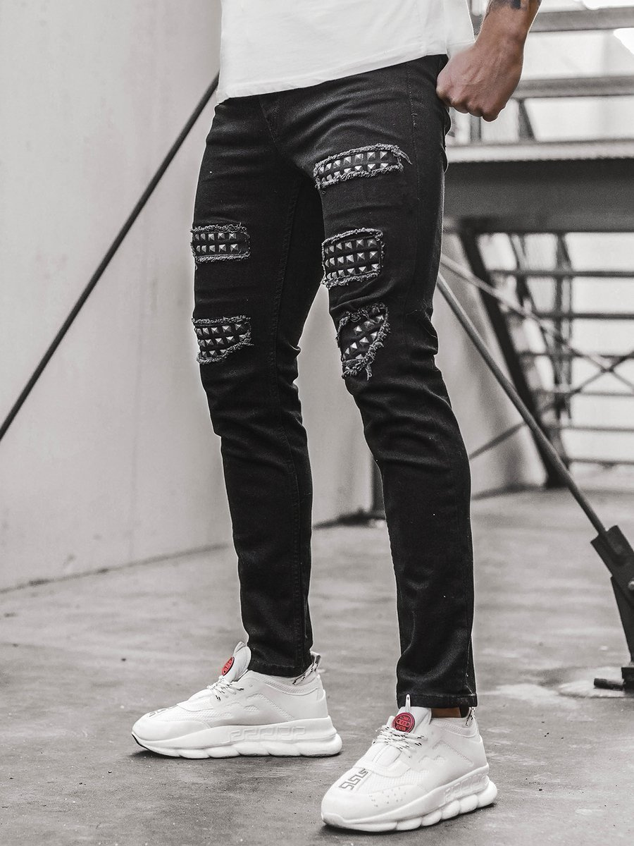 Spodnie prezentują się niezwykle efektownie, a to za sprawą znajdujących się na przodzie przetarć oraz ćwieków, które nadają im rockowego charakteru. Mają one praktyczne kieszenie z przodu i z tyłu, do których schować można telefon, klucze czy portfel. Jeansy zostały wyprodukowane z bawełny z domieszką lycry, dzięki czemu ładnie układają się na sylwetce, są wygodne w noszeniu, miłe w dotyku, przewiewne i odporne na uszkodzenia oraz zagniecenia.