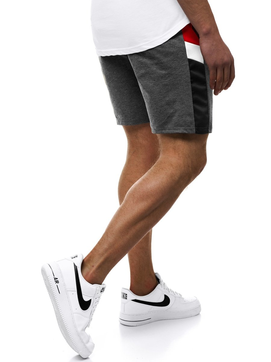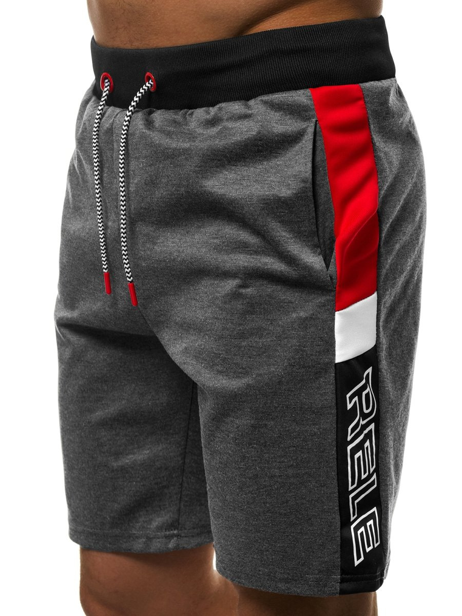 Spodenki wyglądają bardzo oryginalnie, czego zasługą są kontrastowe wstawki oraz nadruk, które znajdują się na nogawkach. Mają one praktyczne kieszenie po bokach, do których schować można klucze, telefon czy portfel. W pasie znajduje się ściągacz, który umożliwia dopasowanie spodenek do sylwetki i skutecznie zabezpiecza przed ich przesuwaniem się. Model ten wykonany został z połączenia bawełny oraz poliestru, dzięki czemu jest wygodny w noszeniu, ładnie układa się, nie gniecie i nie rozciąga.