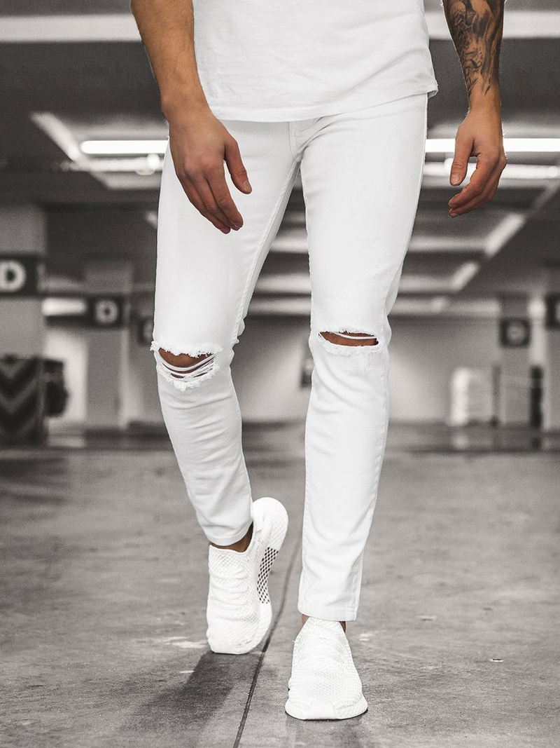 Dzięki obecności dziur na nogawkach, spodnie prezentują się niezwykle oryginalnie. Posiadają praktyczne kieszenie z przodu oraz z tyłu. Zostały wyprodukowane z bawełny z niewielką domieszką elastanu, co sprawia, że zarówno ładnie układają się na nogawce, jak i są miłe w dotyku oraz wygodne.
