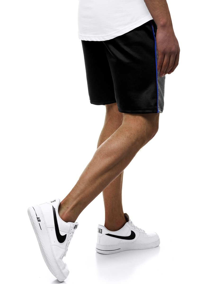Spodenki mają praktyczny pas ze ściągaczem, dzięki któremu nie przesuwają się podczas noszenia. Wyposażono je w kieszenie po bokach, do których schować można klucze, portfel czy telefon. Oryginalnego wyglądu nadają spodenkom kontrastowe nogawki z tyłu oraz znajdujący się na przodzie nadruk. Model ten wykonany został z połączenia bawełny i poliestru, dzięki czemu ładnie układa się na ciele, jest wygodny w noszeniu, miły w dotyku, nie gniecie się i nie rozciąga.
