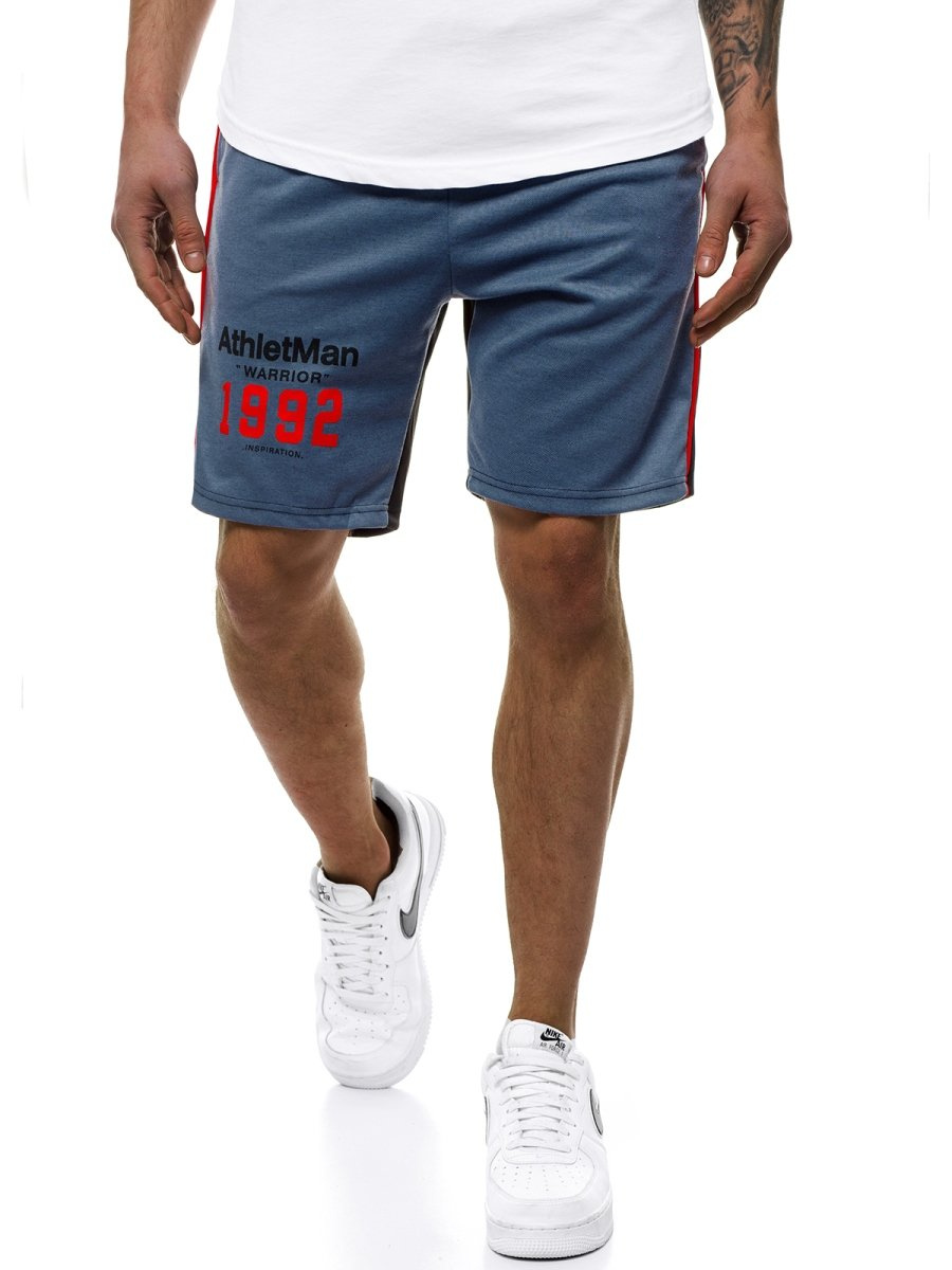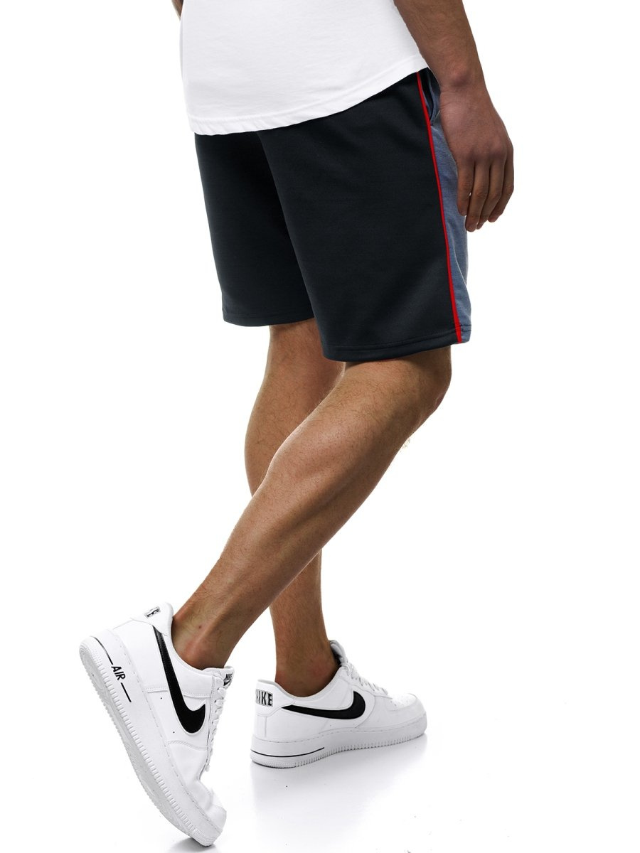 Spodenki mają praktyczny pas ze ściągaczem, dzięki któremu nie przesuwają się podczas noszenia. Wyposażono je w kieszenie po bokach, do których schować można klucze, portfel czy telefon. Oryginalnego wyglądu nadają spodenkom kontrastowe nogawki z tyłu oraz znajdujący się na przodzie nadruk. Model ten wykonany został z połączenia bawełny i poliestru, dzięki czemu ładnie układa się na ciele, jest wygodny w noszeniu, miły w dotyku, nie gniecie się i nie rozciąga.