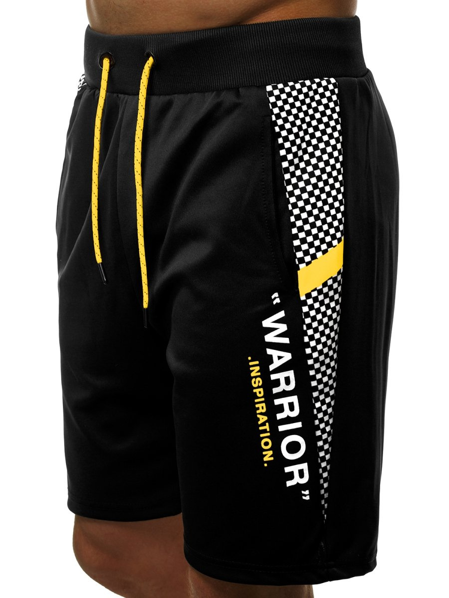 Spodenki mają praktyczny pas ze ściągaczem, dzięki czemu dobrze dopasowują się do sylwetki i nie przesuwają podczas noszenia. Po bokach znajdują się kieszenie, do których schować można wszystkie niezbędne drobiazgi. Oryginalnego charakteru nadają spodenkom kontrastowe wstawki po bokach oraz pokrywający je nadruk. Model ten został wykonany z bawełny oraz poliestru. Takie połączenie sprawia, że spodenki ładnie układają się na ciele, są wygodne, miłe w dotyku, nie gniotą się i nie rozciągają.