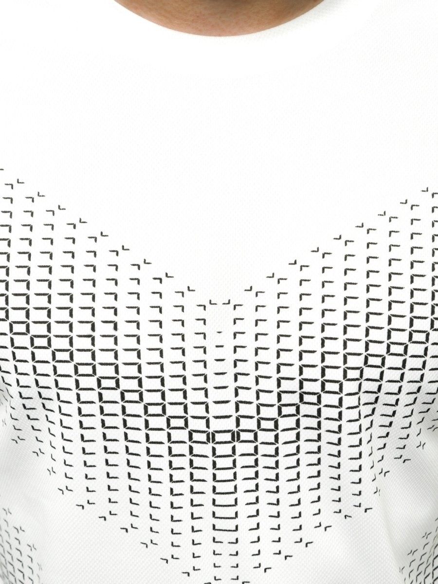 Koszulka ma efektowny nadruk na przodzie i rękawach, dzięki czemu wygląda bardzo efektownie. Posiada ona klasyczny, okrągły dekolt typu U-neck. T-shirt został wykonany z wysokiej jakości poliestru z domieszką elastanu, dzięki czemu bardzo ładnie układa się na ciele, nie rozciąga i nie gniecie.
