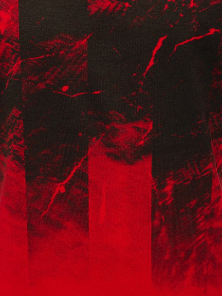 T-shirt ma klasyczny, okrągły dekolt typu U-neck. Oryginalnego charakteru nadaje mu nadruk na przodzie oraz kontrastowy kolor u góry. Koszulka wykonana została z połączenia bawełny oraz poliestru, dzięki czemu ładnie dopasowuje się do sylwetki, nie gniecie się, nie rozciąga, jest miła w dotyku oraz wygodna w noszeniu.