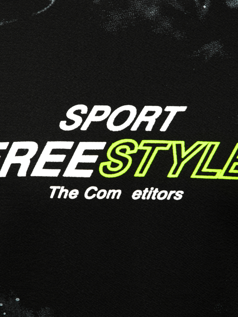 Koszulka ma klasyczny, okrągły dekolt typu U-neck. Oryginalnego wyglądu nadaje jej nadruk znajdujący się na przodzie i rękawach. T-shirt został wyprodukowany z połączenia bawełny oraz poliestru. Sprawia to, że ładnie dopasowuje się do sylwetki, nie rozciąga i nie gniecie, jest wygodny w noszeniu oraz miły w dotyku.