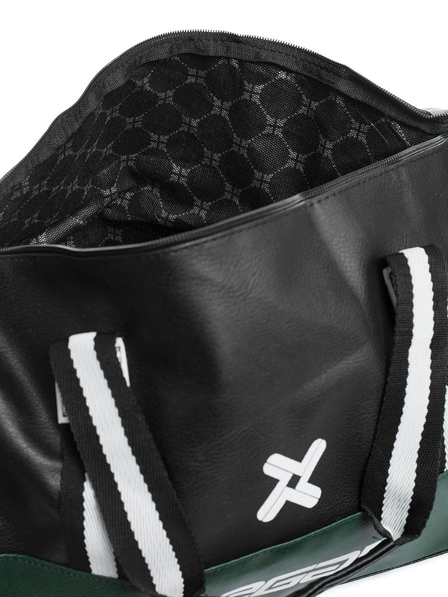 Torba została wykonana z wysokiej jakości, wytrzymałej eko skóry. Ma ona praktyczny, odpinany zamek z regulacją długości, ułatwiający dopasowanie go do indywidualnych preferencji. Torba wyposażona jest również w podręczną rączkę, która pozwala na wygodne przenoszenie jej z miejsca na miejsce. Model ten zapinany jest na zamek błyskawiczny. Oryginalnego wyglądu nadaje mu kontrastowa kolorystyka oraz znajdujący się z boku nadruk.