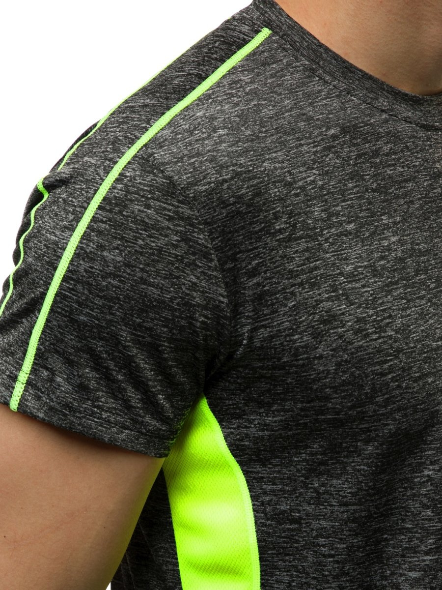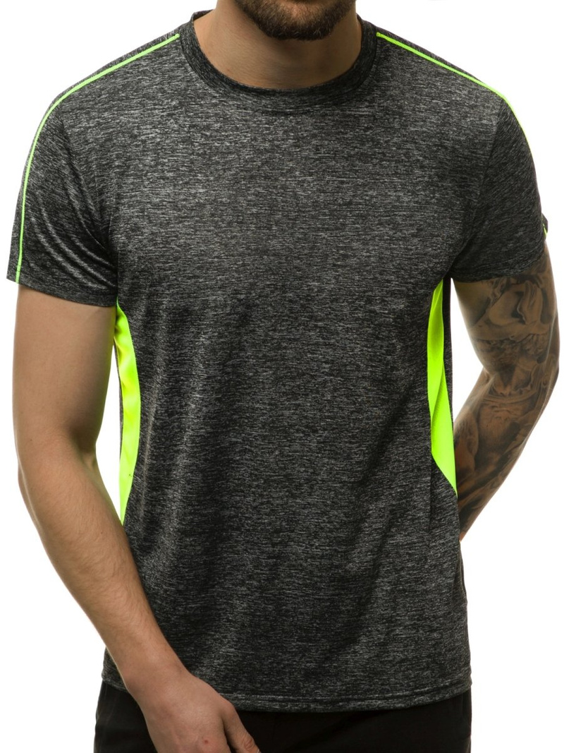 Koszulka ma klasyczny, okrągły dekolt typu U-neck. Oryginalnego wyglądu nadają jej znajdujące się po bokach kontrastowe wstawki. T-shirt został wykonany z bawełny z domieszką elastanu. Sprawia to, że ładnie dopasowuje się do sylwetki, nie gniecie się i nie rozciąga, jest miły w dotyku oraz wygodny w noszeniu.