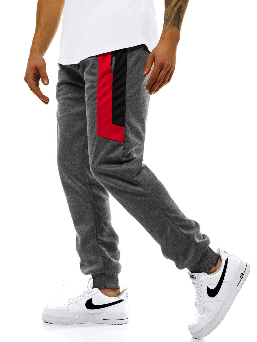 Spodnie mają luźny krój, a ich pas i nogawki wykończone są ściągaczami. Tego typu fason określa się mianem joggerów. Spodnie mają praktyczne kieszenie po bokach, do których można schować portfel czy klucze. Oryginalnego charakteru nadają im znajdujące się z boku kontrastowe wstawki. Joggery wykonane zostały z połączenia bawełny oraz poliestru. Sprawia to, że są miłe w dotyku, przewiewne, wygodne w noszeniu i ładnie układają się na ciele.