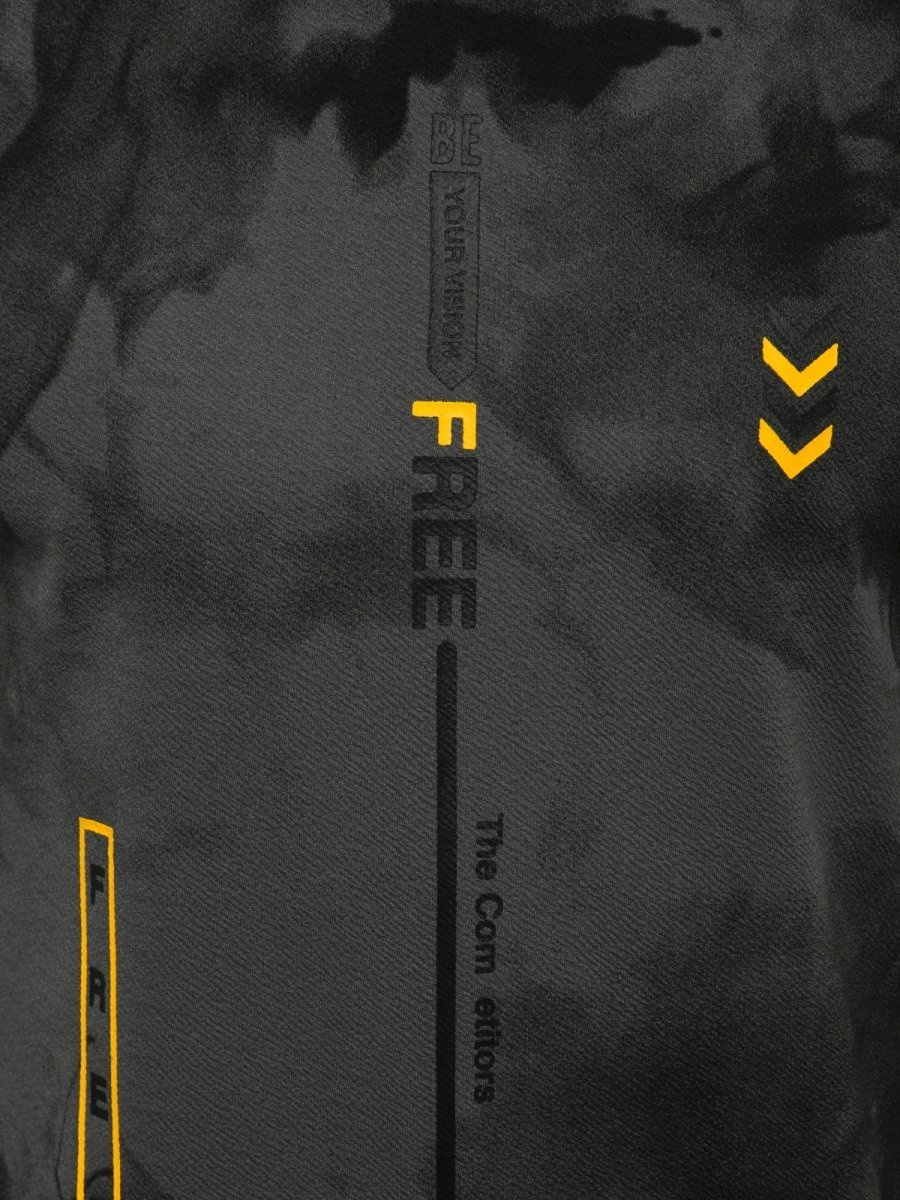 Koszulka ma klasyczny, okrągły dekolt typu U-neck. Na jej przodzie oraz rękawach znajduje się efektowny nadruk. T-shirt wykonany został z połączenia bawełny oraz poliestru. Sprawia to, że jest on wygodny w noszeniu, miły w dotyku, ładnie dopasowuje się do sylwetki, nie gniecie i nie rozciąga.