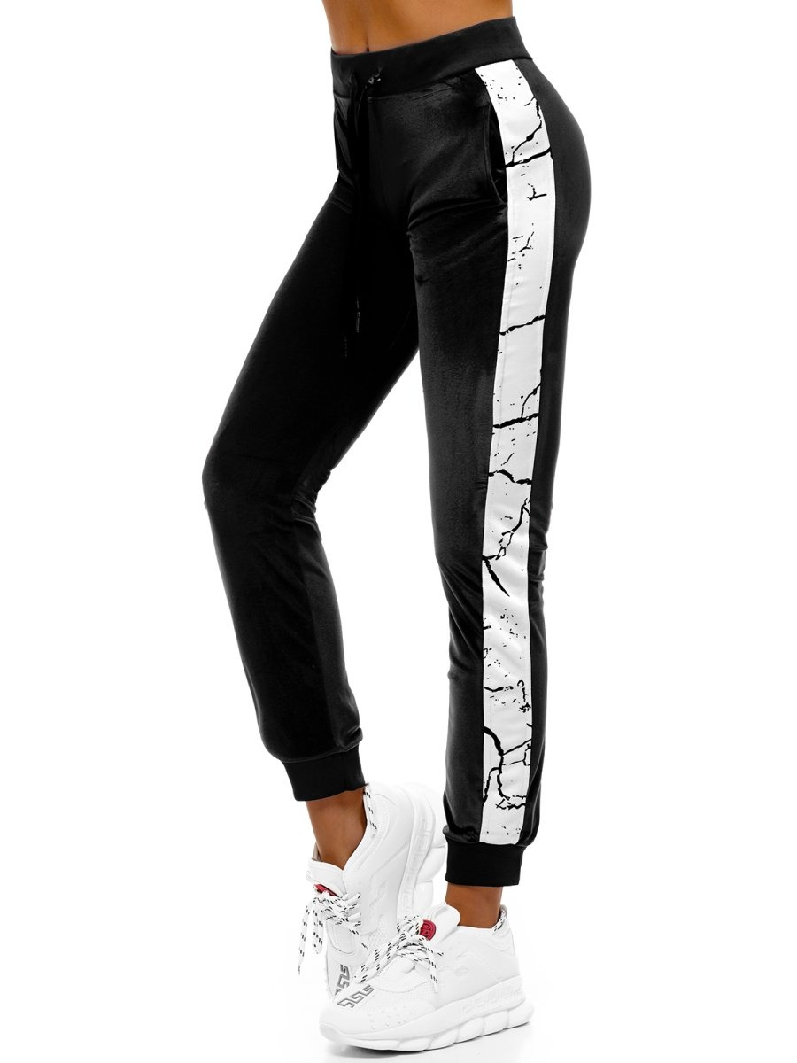 Spodnie zostały wykonane z połączenia wysokiej jakości bawełny oraz poliestru, dzięki czemu ładnie dopasowują się do sylwetki, nie rozciągają i nie gniotą, są wygodne w noszeniu i miłe w dotyku. Dresy mają w pasie praktyczny ściągacz, który skutecznie zabezpiecza je przed przesuwaniem się i zsuwaniem. Po bokach znajdują się kieszenie, do których schować można telefon, portfel czy klucze. Oryginalnego charakteru nadają spodniom biegnące wzdłuż nogawek kontrastowe pasy.